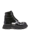 Calfskin Wander Combat Boots by Alexander McQueen, all-over cut-out details, lace-up front closure, ankle-length pattern, textured sole.