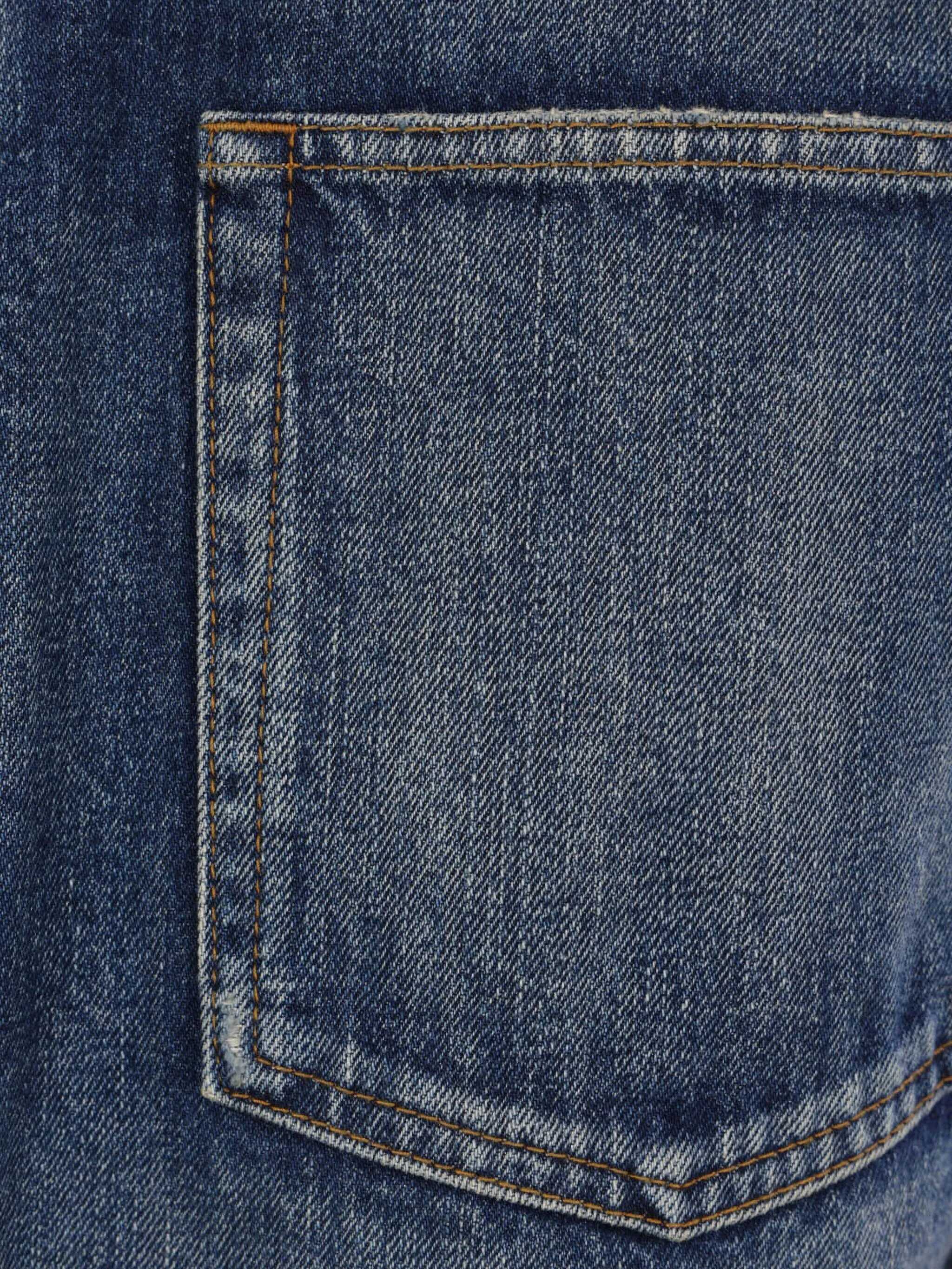 Jeans a gamba dritta di Saint Laurent realizzato in denim di cotone color blu. Caratterizzato da chiusura frontale con bottoni metallici, passanti per cintura, cinque tasche classiche e patch logo sul retro.
