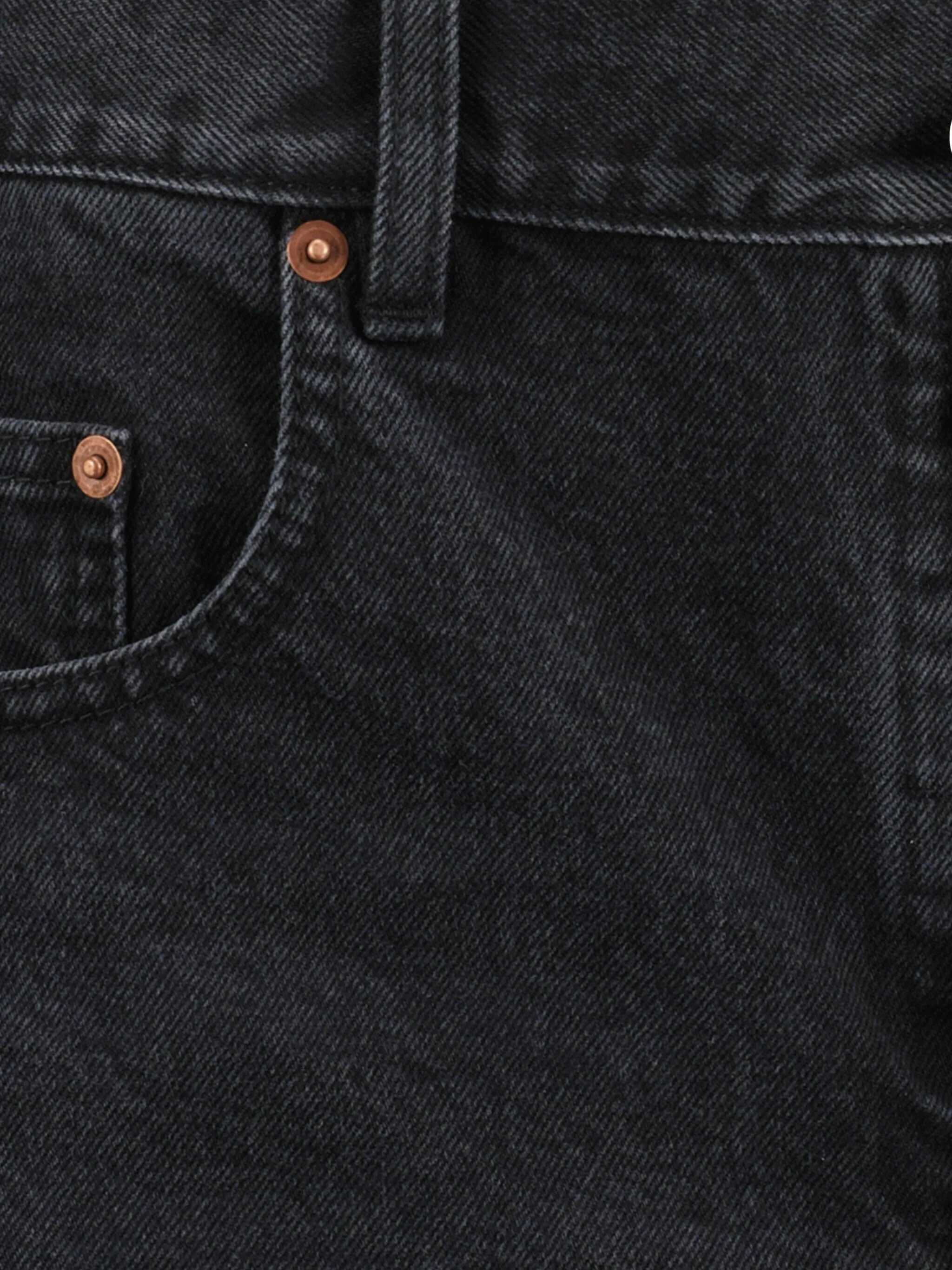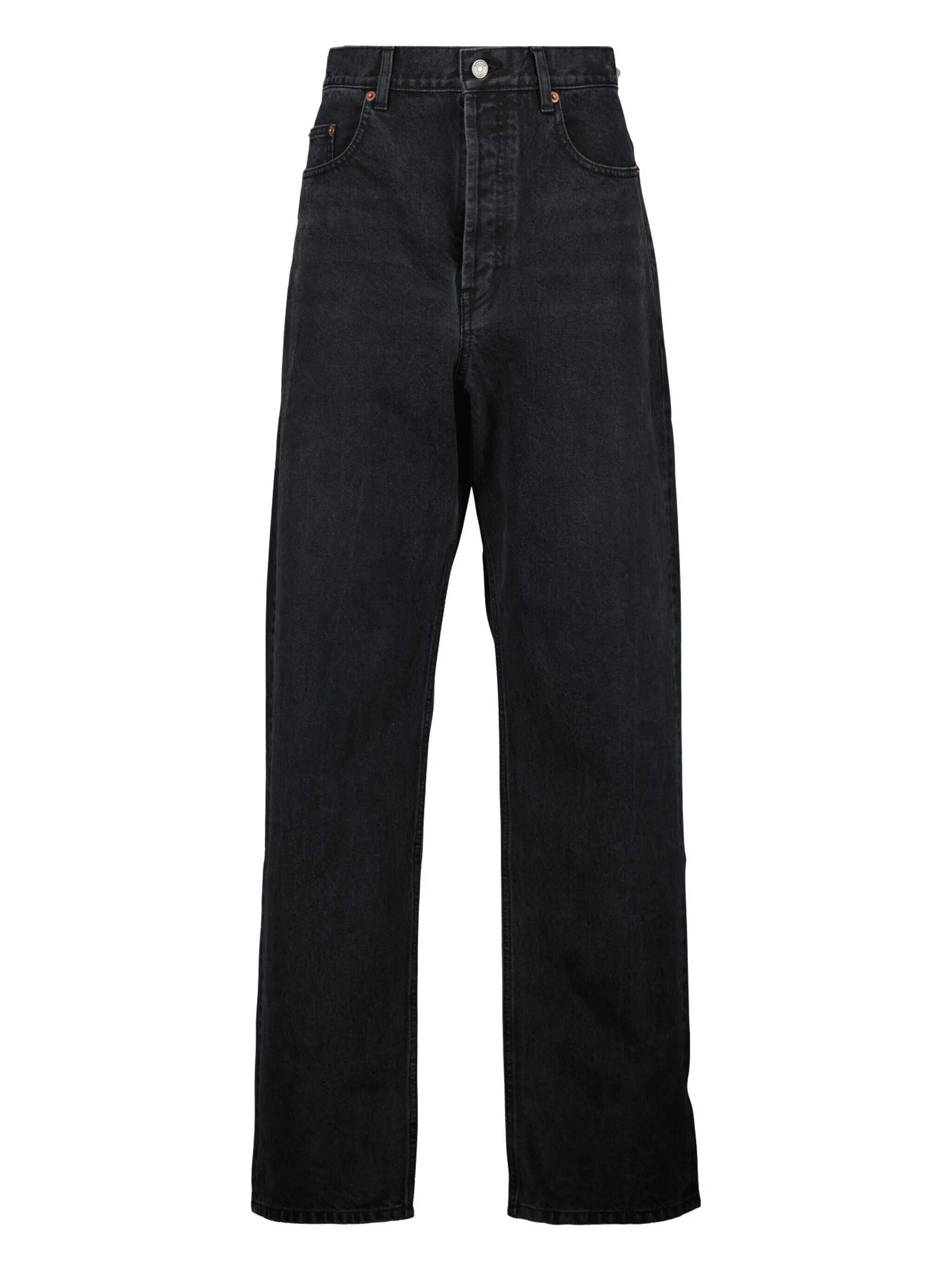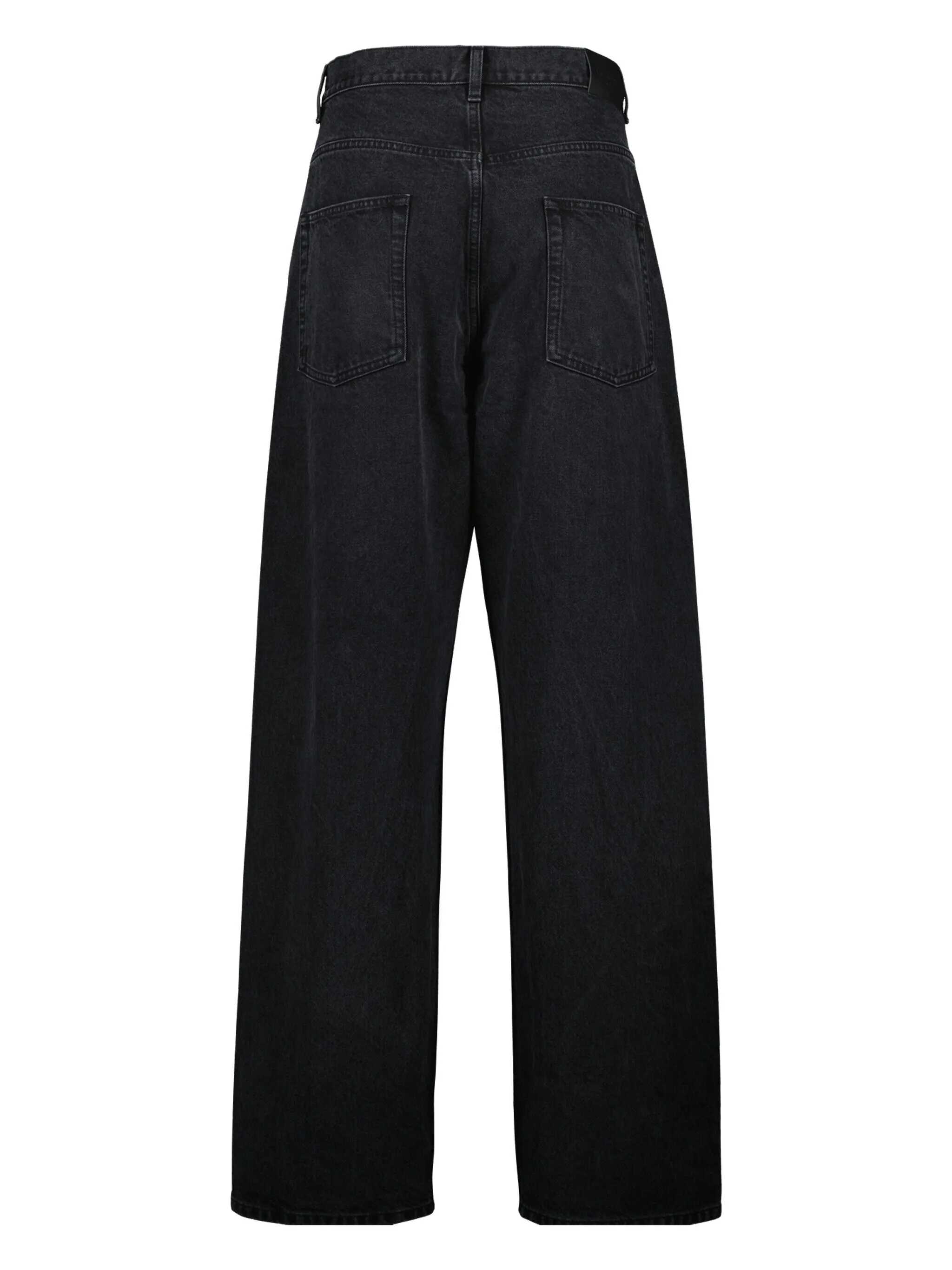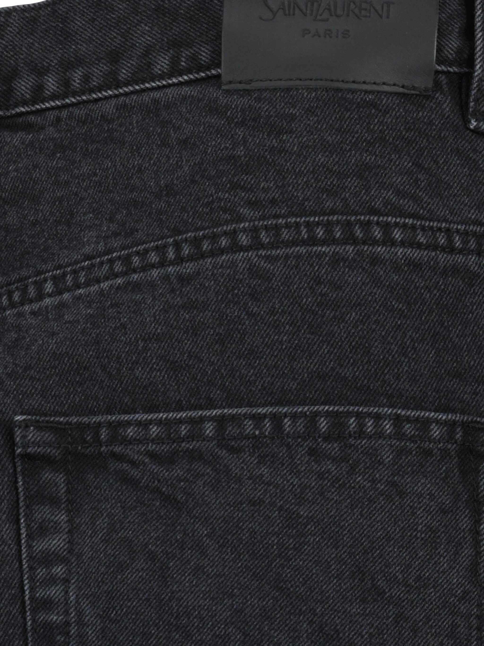 Saint Laurent carrot-fit jeans crafted from faded black cotton denim. Featuring a front closure with metal buttons, belt loops, five classic pockets, and a leather logo patch at the back.
