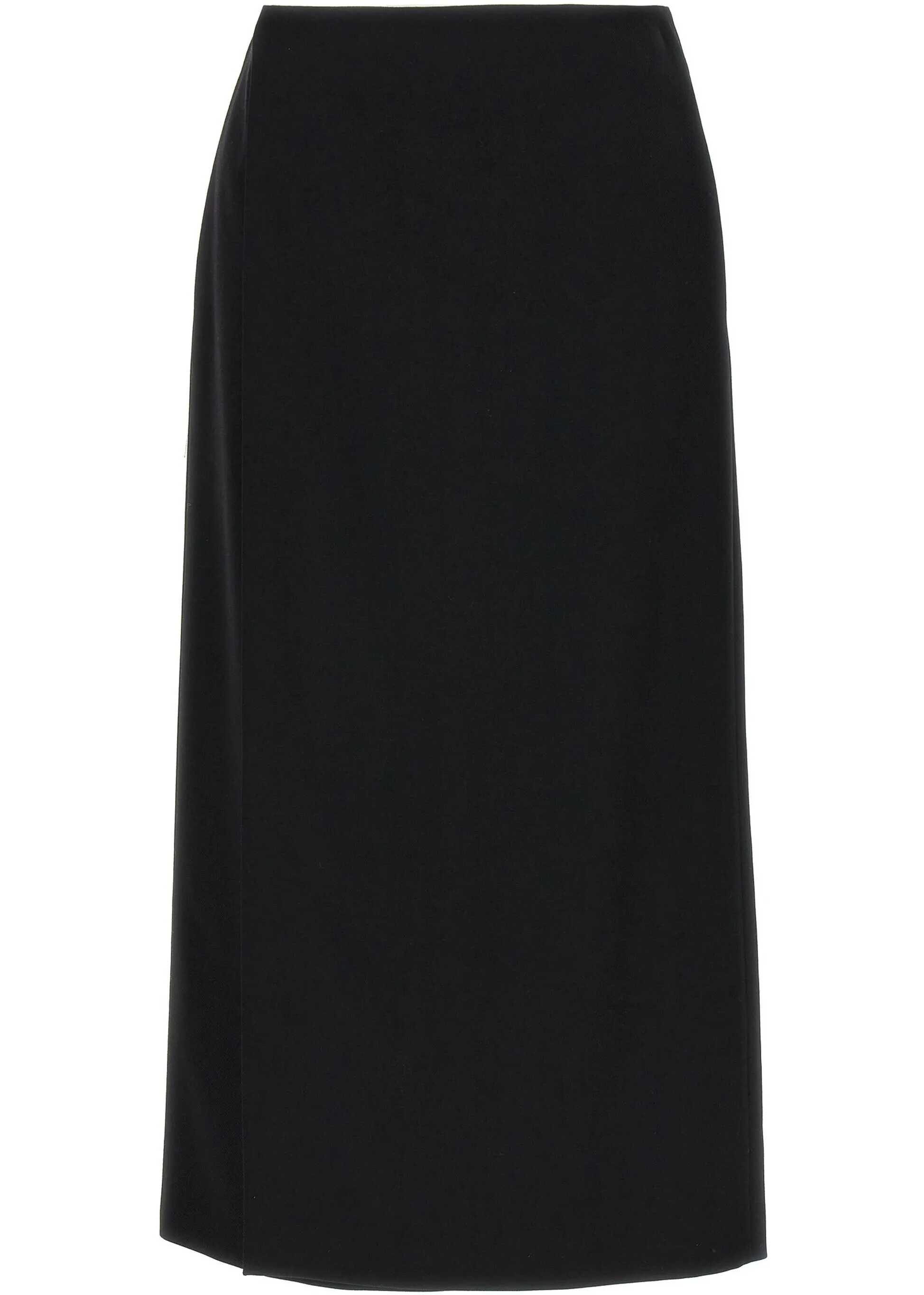 The Kavi Skirt by The Row is a midi piece with a minimalist and sophisticated design. The wrap style closes elegantly with a hook-and-button fastening, creating a clean, understated silhouette. Essential and versatile, it reflects the brand's refined and timeless aesthetic.