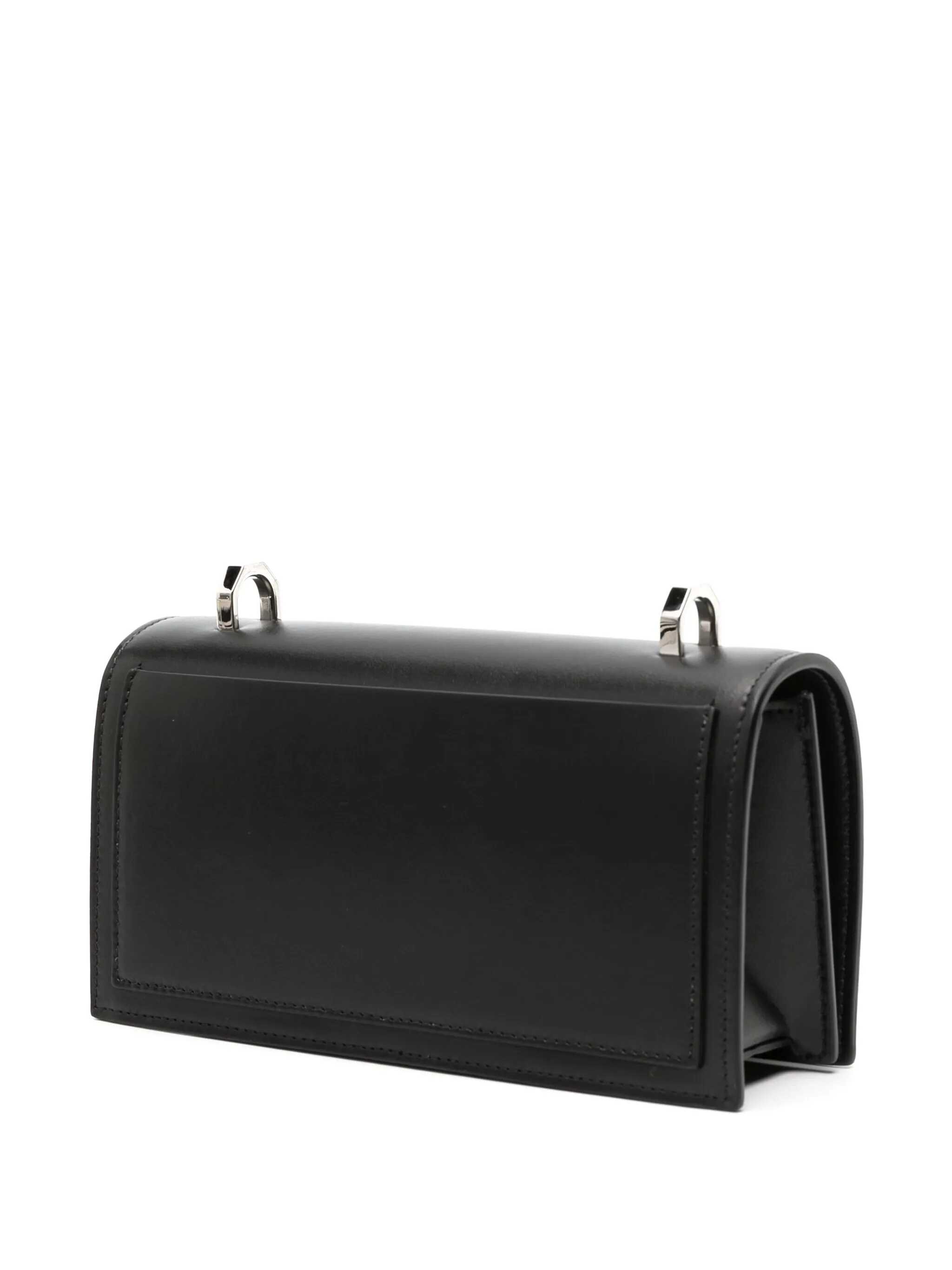 Black leather The Knuckle Satchel crossbody bag Width: 21,5 cm Height: 12 cm Depth: 5,5 cm Min shoulder strap length: 40 cm Max shoulder strap length: 70 cm