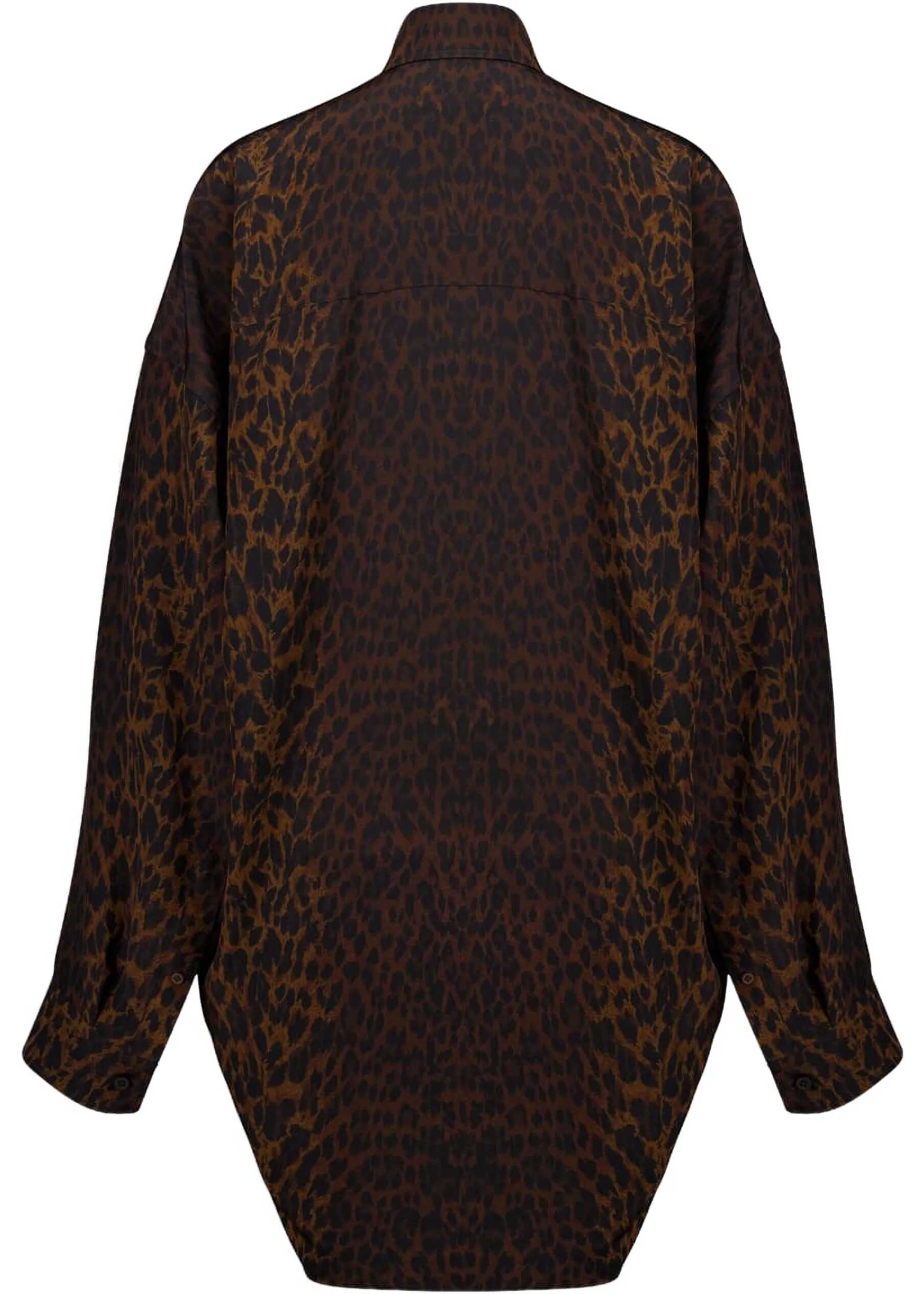 Balenciaga's Leopard Shirt is a bold and contemporary piece that reinvents a classic with a gritty twist. Featuring a classic collar and front button closure, it is distinguished by an asymmetrical hem that gives movement to the silhouette and a touch of originality. The patch pocket on the front adds a functional detail, while the all-over leopard print expresses all the distinctive attitude of the maison.
