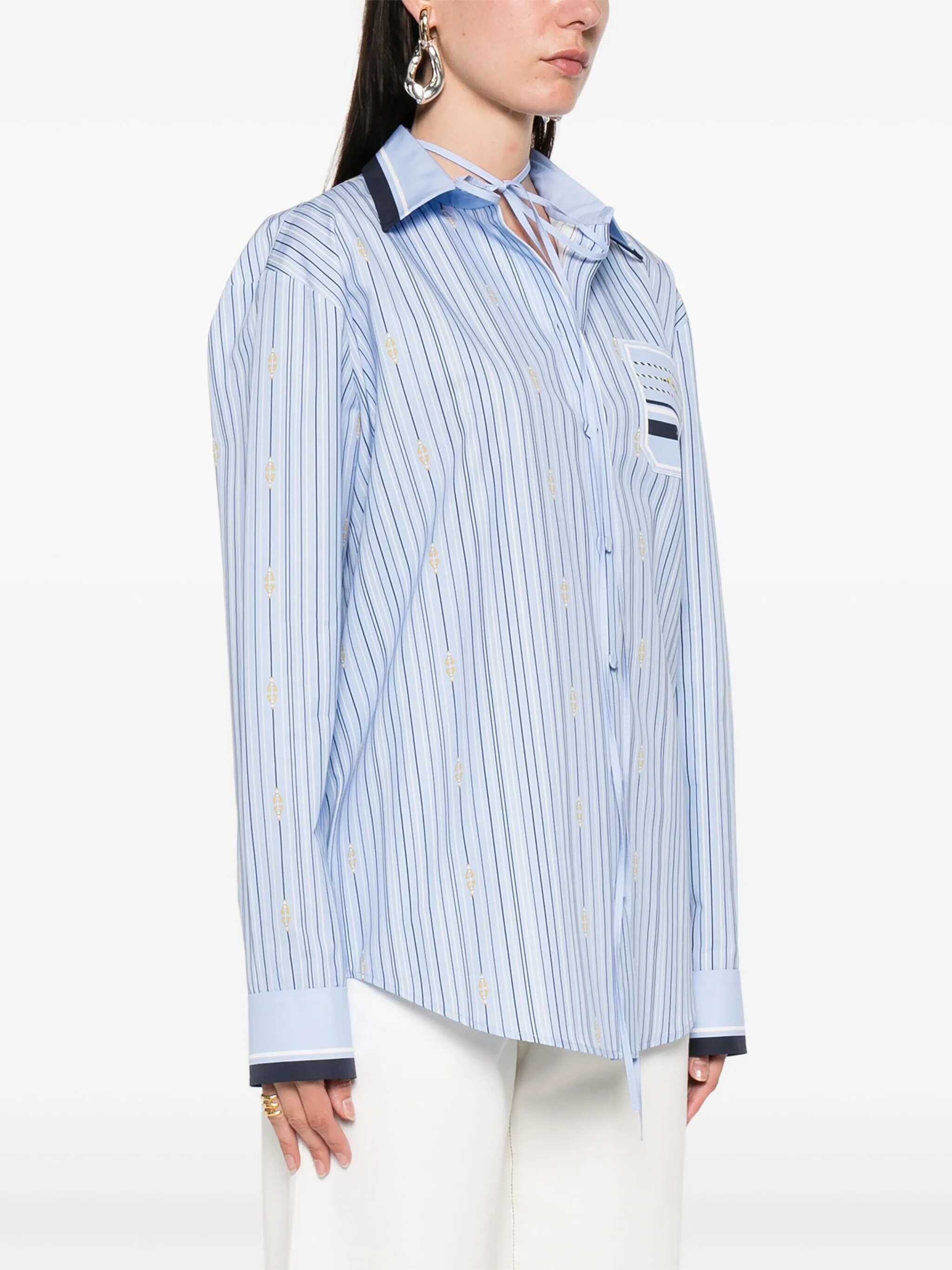 Gucci's Striped Shirt combines the allure of traditional tailoring with the house's iconic details. Crafted with a classic collar and front button closure, it features a patch pocket on the chest embellished with Gucci's Morsetto print, matching the all-over stripe pattern. Button cuffs complete the design with a formal touch. A garment with a strong character, blending elegance and recognizability in perfect Gucci style.