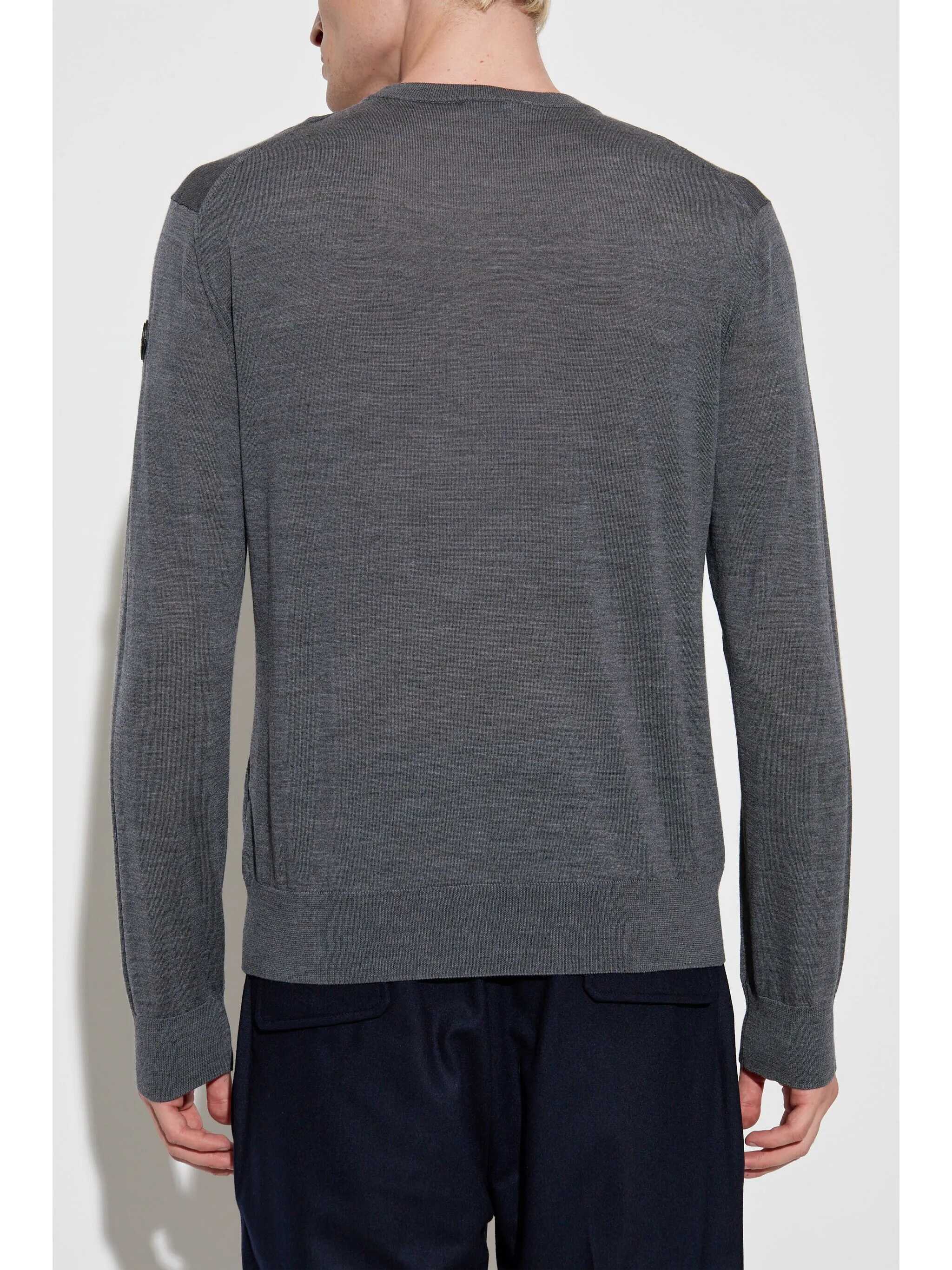 Wool sweater with front logo intarsia, crew neck, long cuffed sleeves, leather logo patch