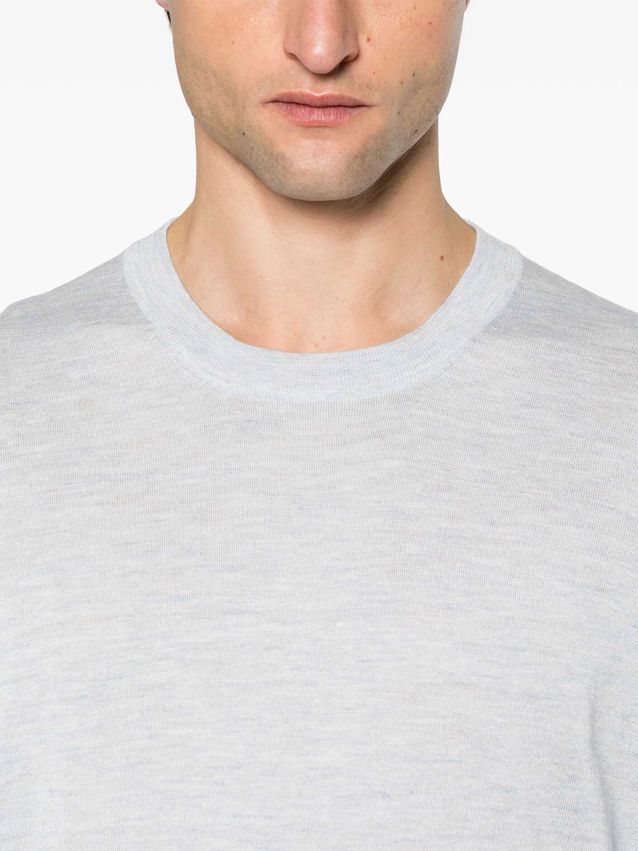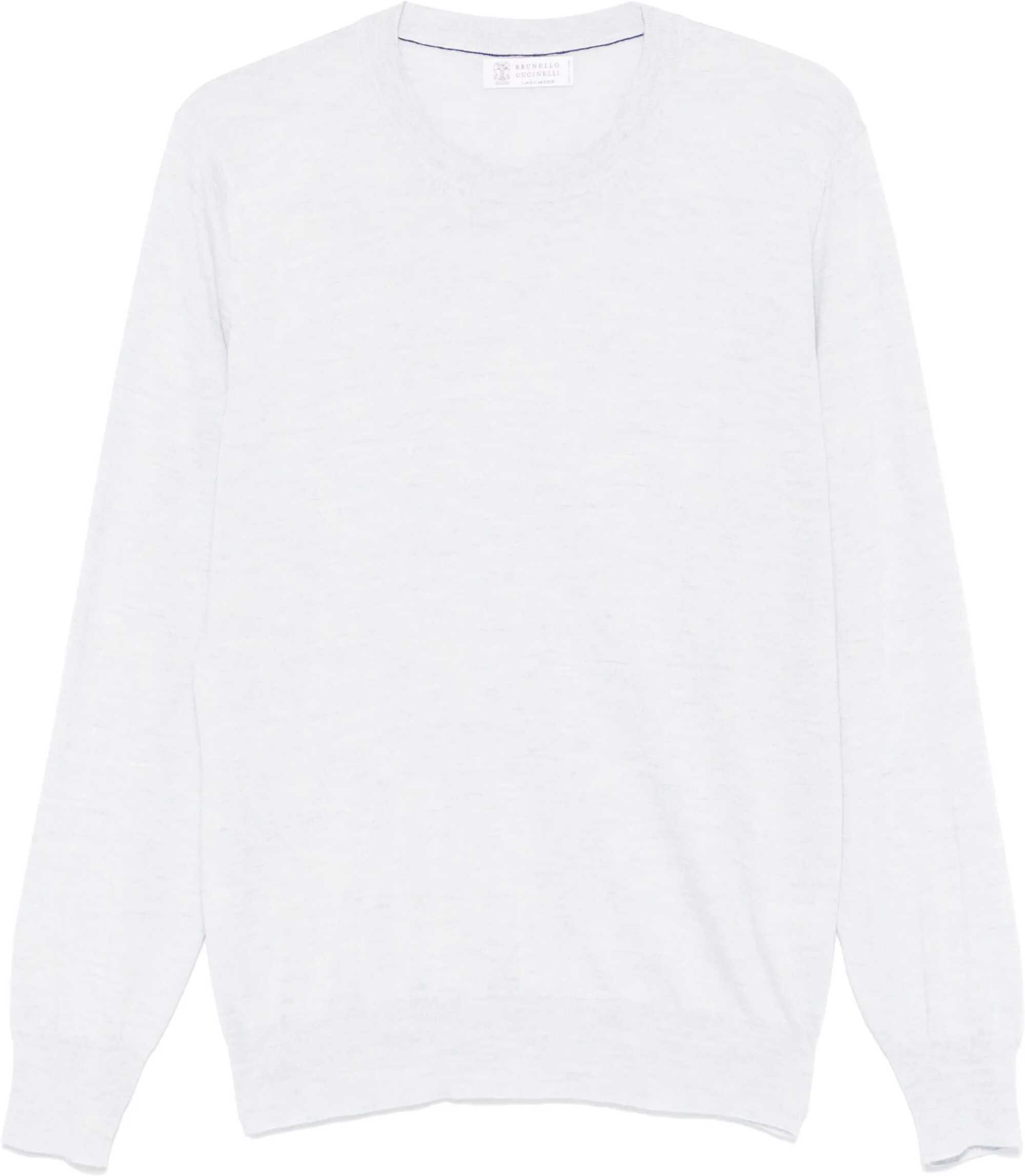 Brunello Cucinelli's signature cashmere and silk sweater combines unmistakable material quality with design sophistication. Crafted from a fine cashmere and silk composition, the garment features a ribbed crew neck, ribbed cuffs and a ribbed hemline, ensuring a comfortable and structured fit. The mélange pattern gives the sweater a sophisticated and versatile visual effect, perfect for pairing with casual or more formal looks. A must-have for those seeking elegance and comfort.
