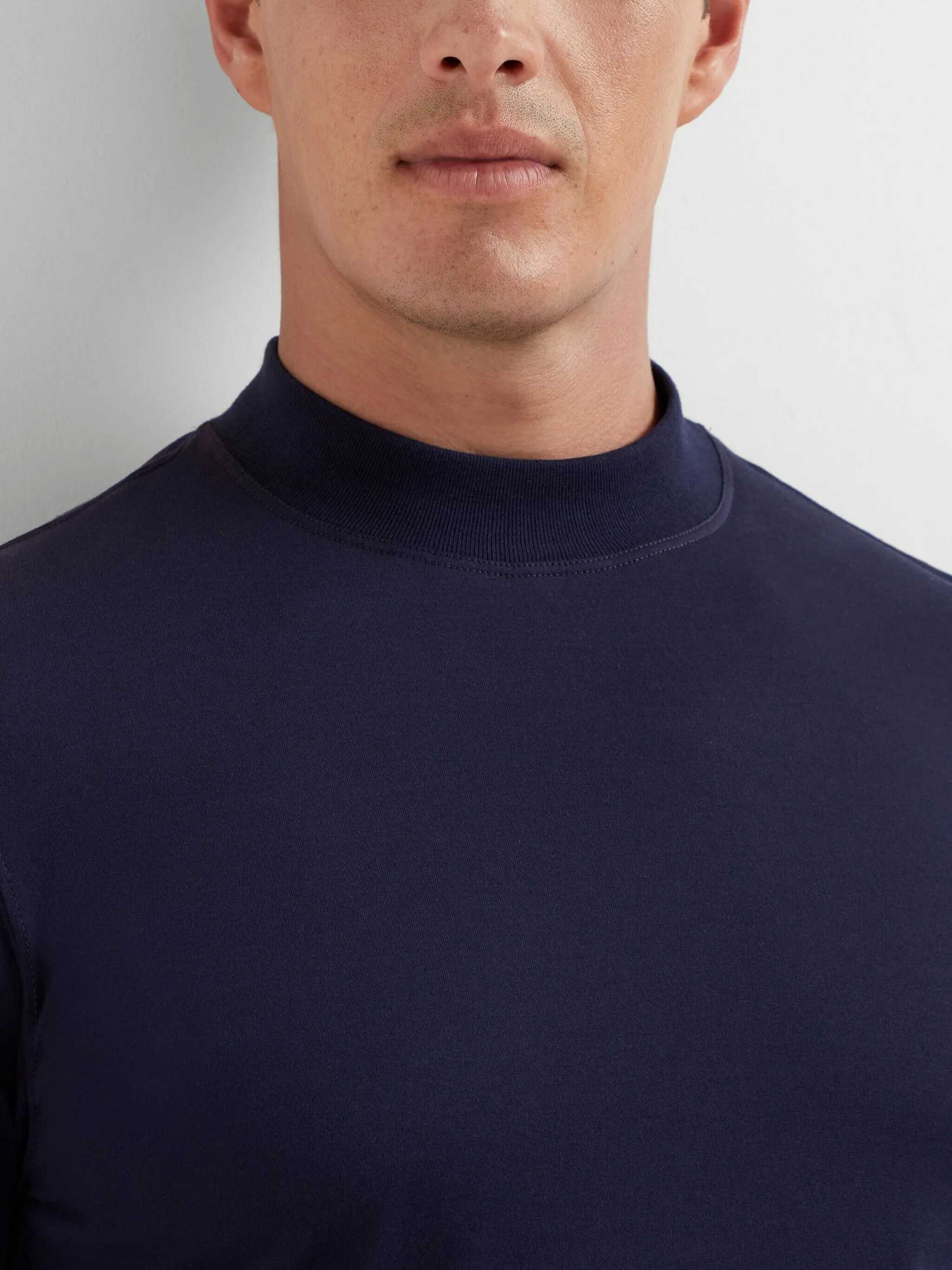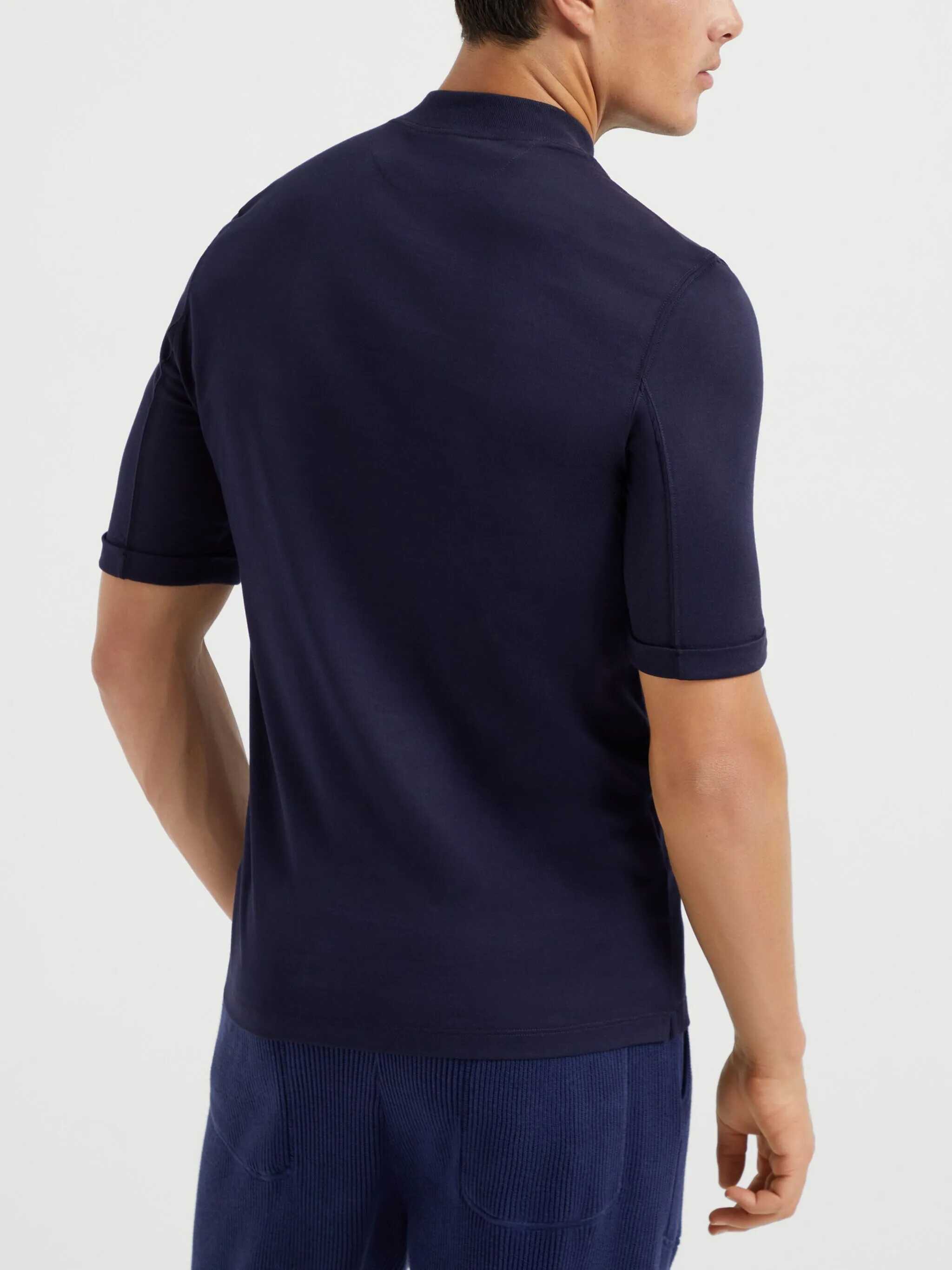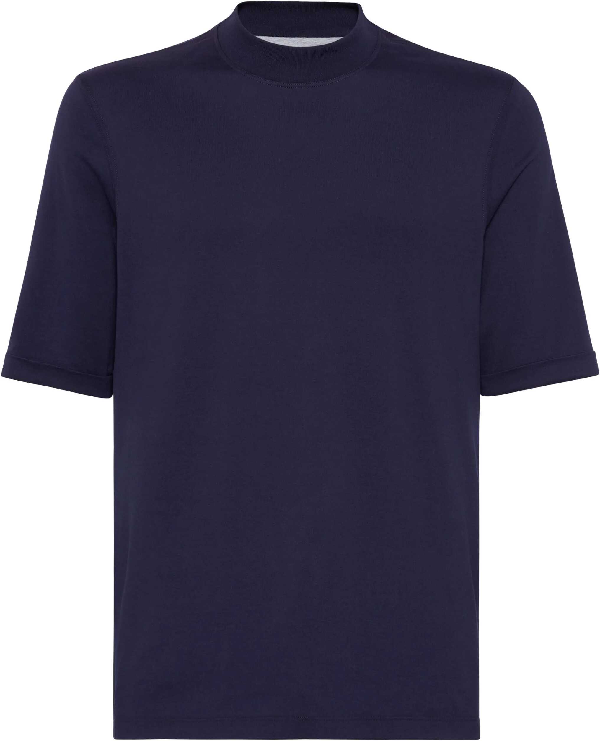 Brunello Cucinelli's signature cotton T-Shirt stands out for its balance between essentiality and attention to detail. The high ribbed crew neck lends structure and a contemporary touch, while the turned-up hem adds an element of understated and refined style. The monochrome pattern enhances the purity of the design, making the garment extremely versatile and suitable for multiple occasions.