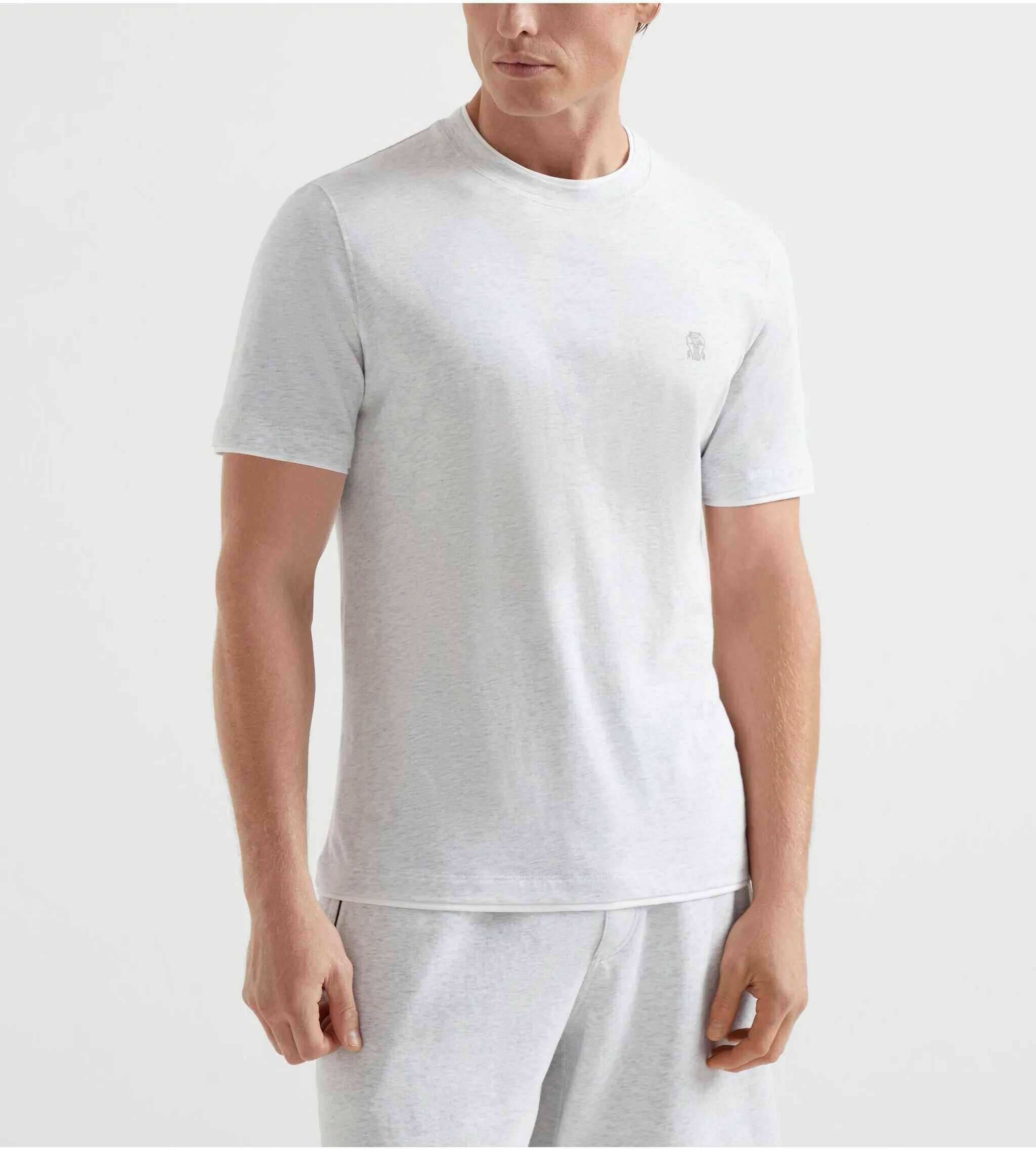 Brunello Cucinelli's cotton T-shirt combines comfort with refined details. The soft cotton fabric is enhanced by the presence of the iconic embroidered logo on the front, discreet yet recognizable. The design is distinguished by double-layered details on the crew neck, hem and sleeves, which add structure and a contemporary touch to the garment.