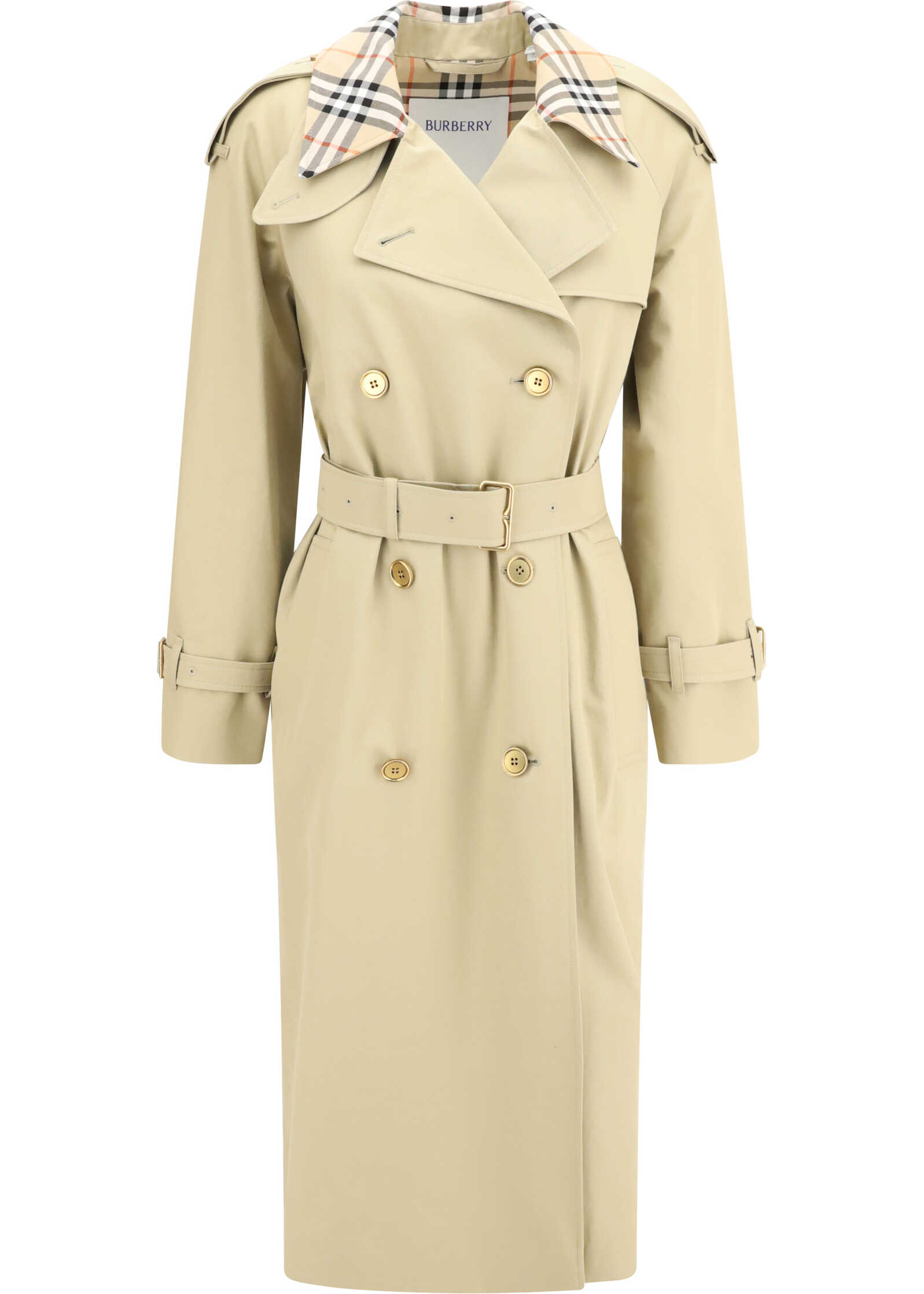 Burberry's Castleford Trench Coat is a timeless classic revisited with the brand's iconic details. Made in a long regular-fit style, it features raglan sleeves, a double-breasted button closure and a belt with a B-shaped buckle. The collar and interior are decorated with the unmistakable Burberry Check pattern, while metallic elements with an antiqued finish add a vintage touch. Completing the design are side welt pockets, adjustable strap cuffs and a back slit for added comfort and movement.