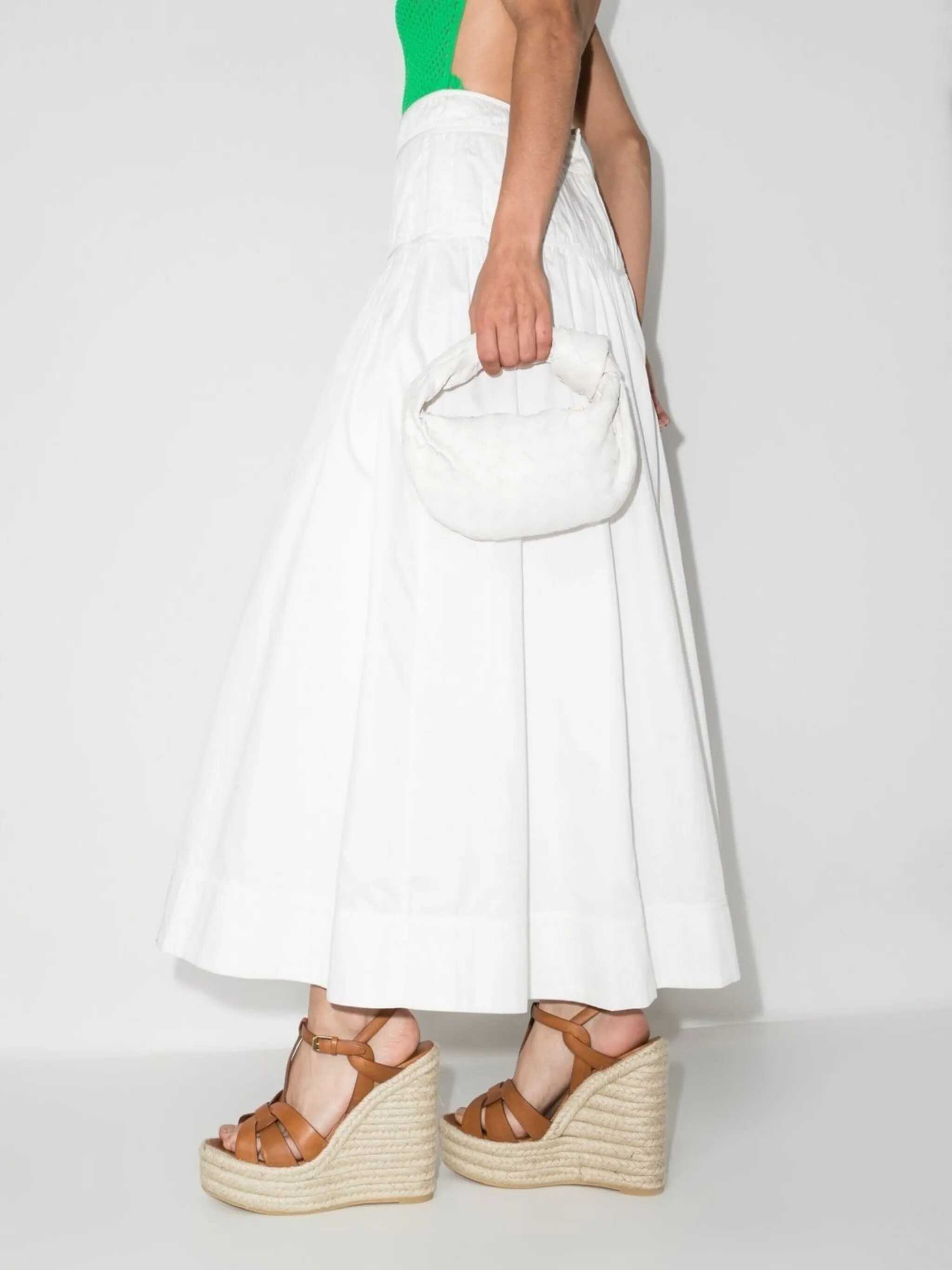 camel brown side buckle fastening crossover strap detail branded leather insole wedge heel
