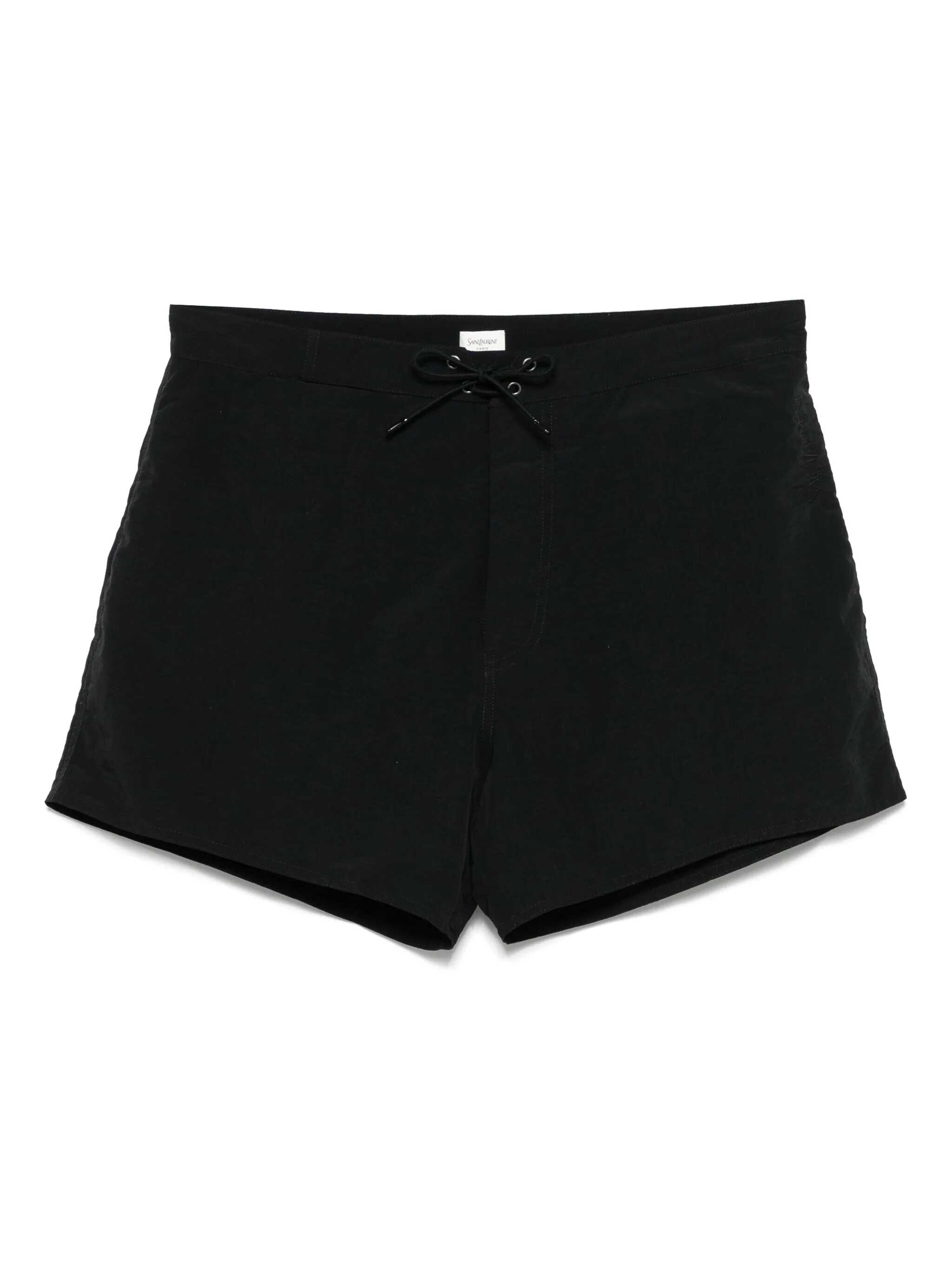 black self-tie fastening two side inset pockets partial lining Be mindful to try on swimwear over your own garments.