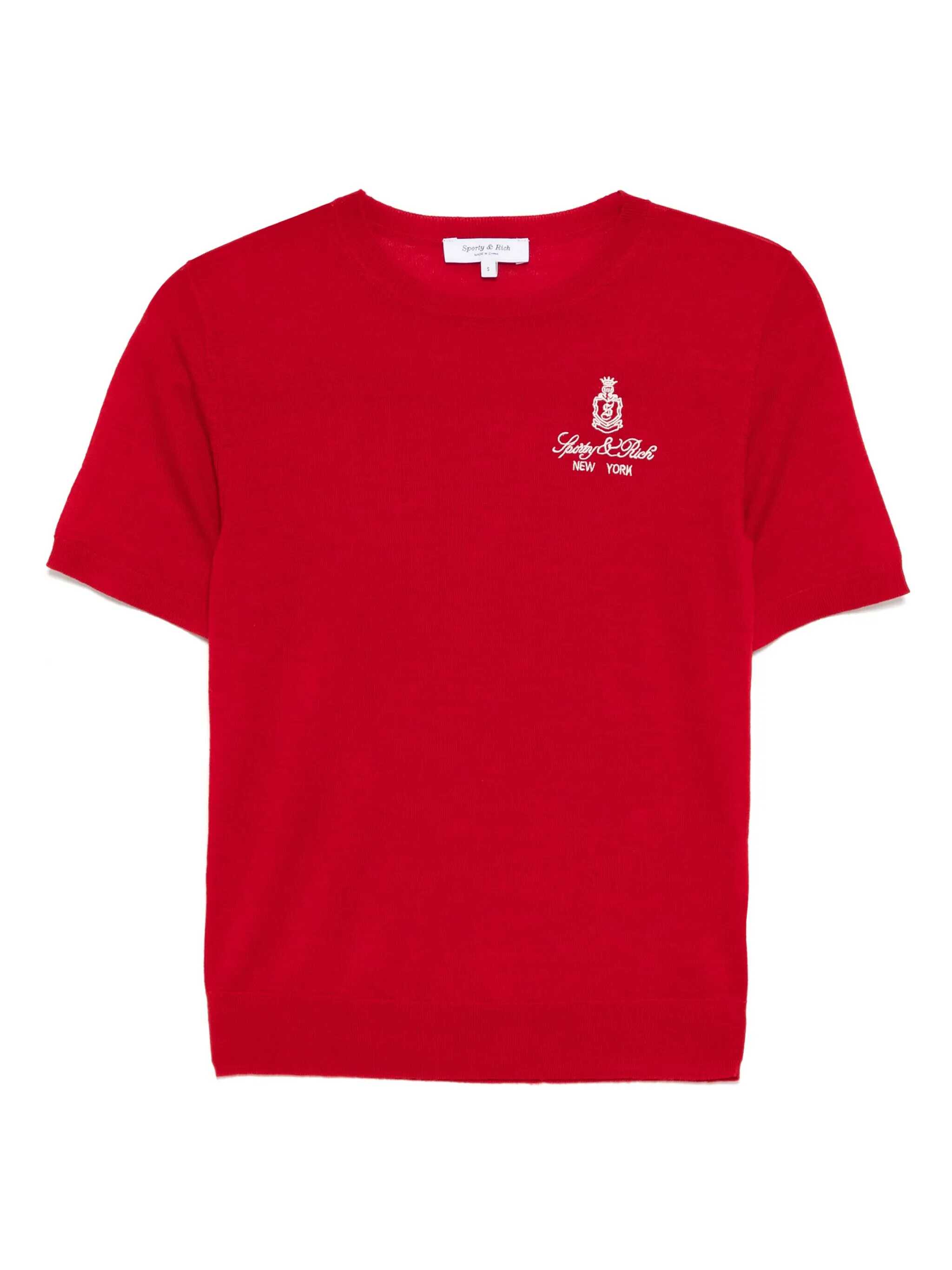 The Ruby t-shirt by SPORTY&RICH is a short-sleeve tee in a bold ruby red shade, featuring a clean design and subtle logo. A versatile piece with a modern, laid-back style, perfect for everyday wear.