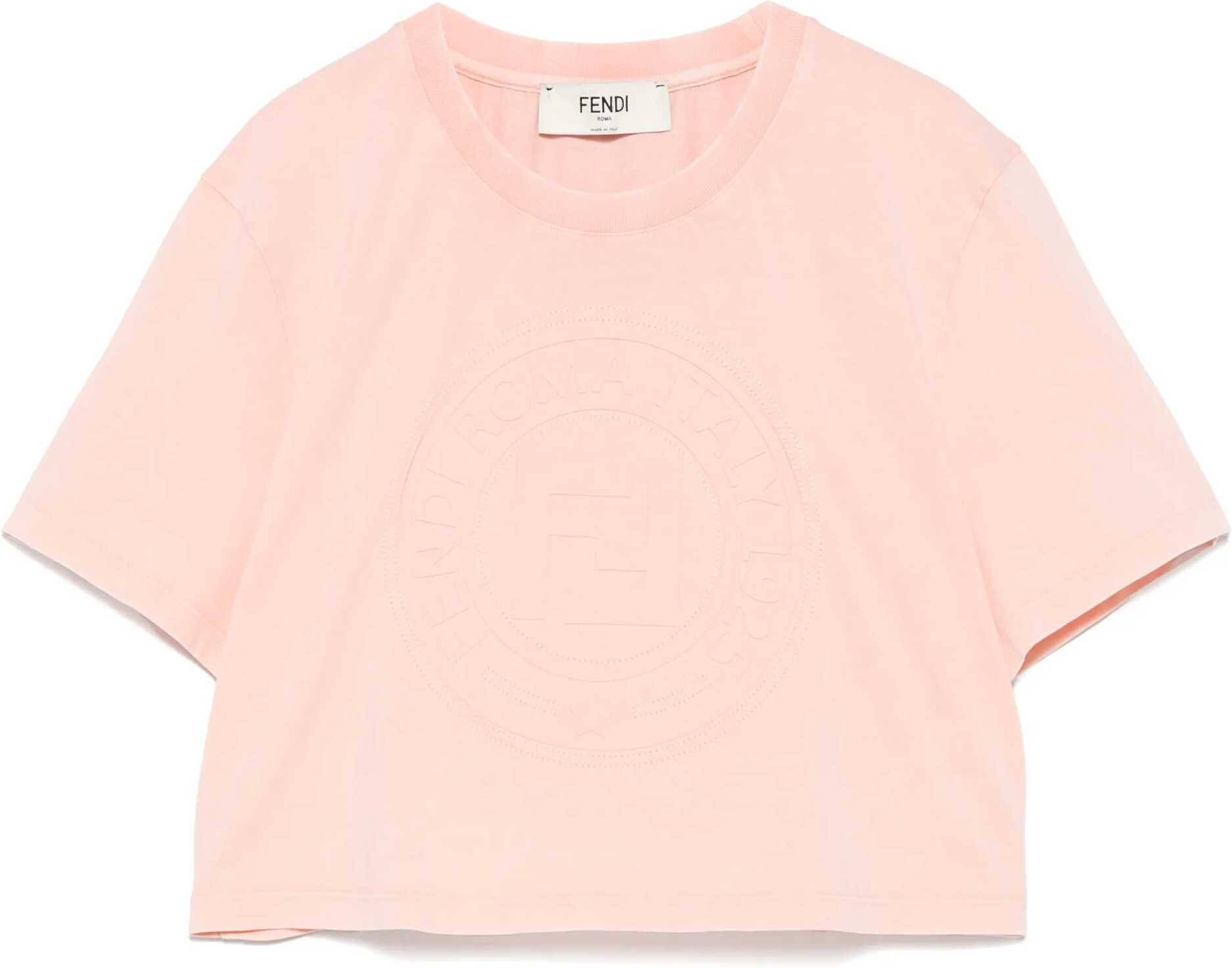 Fendi's Cropped T-Shirt is a contemporary style piece that combines simplicity and brand identity. Made with a ribbed crew neck, it is embellished with the iconic Fendi logo embossed on the front for an essential yet instantly recognizable look.