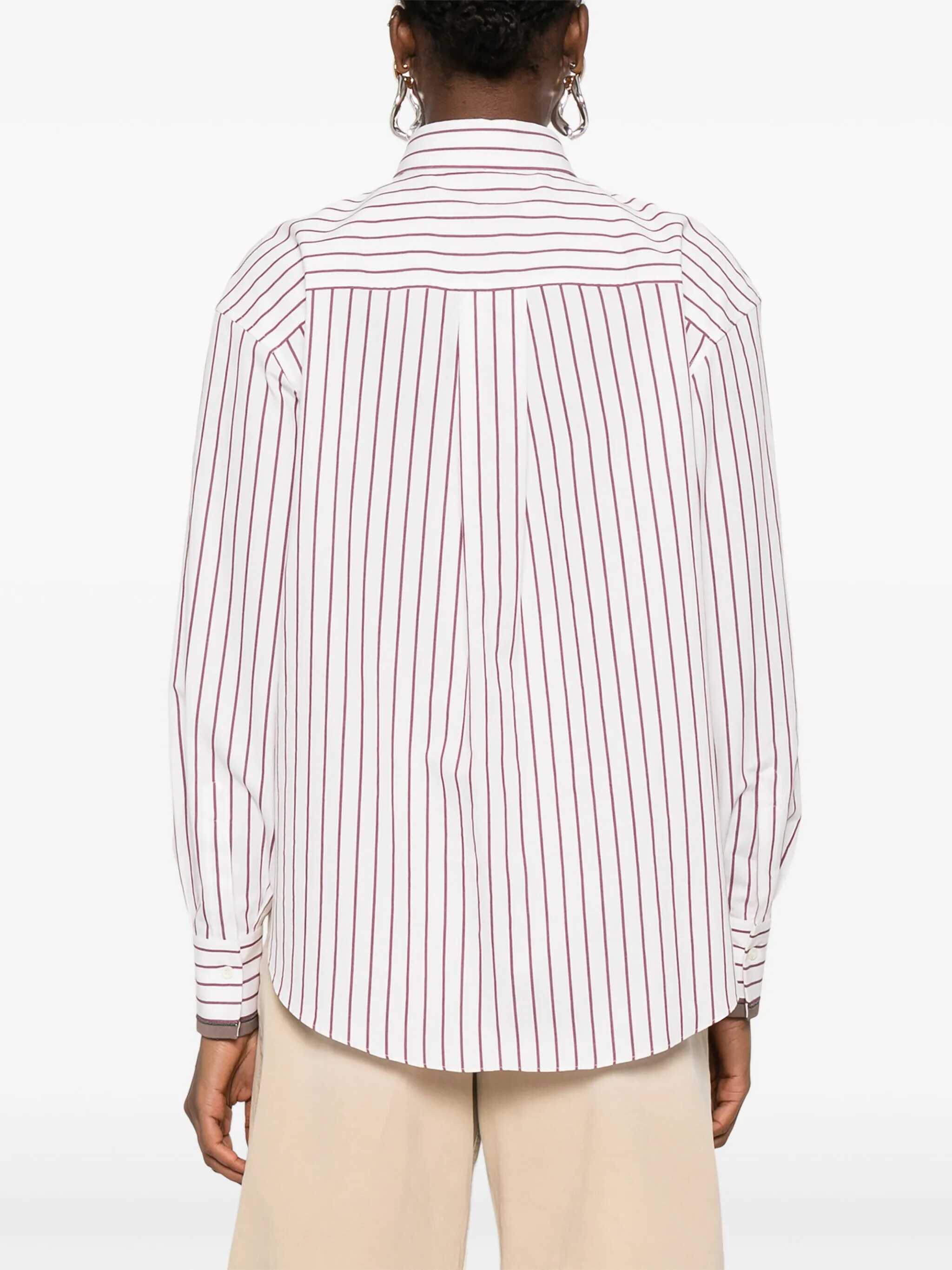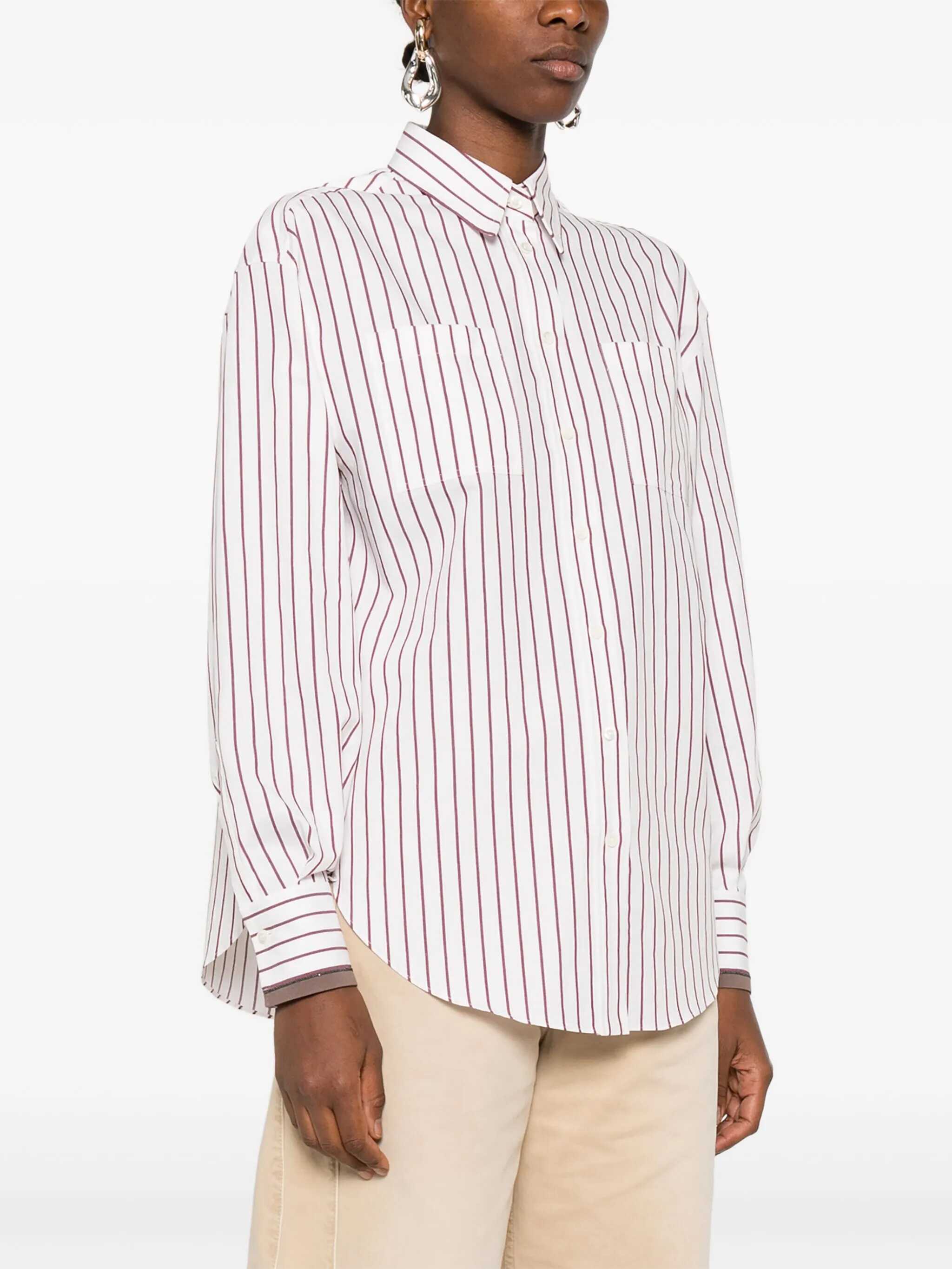 Brunello Cucinelli's Striped Shirt combines classic style with a touch of functionality. Featuring a traditional collar and a front button closure, it is complemented by two patch pockets on the chest, adding practicality and defining a casual yet sophisticated look.