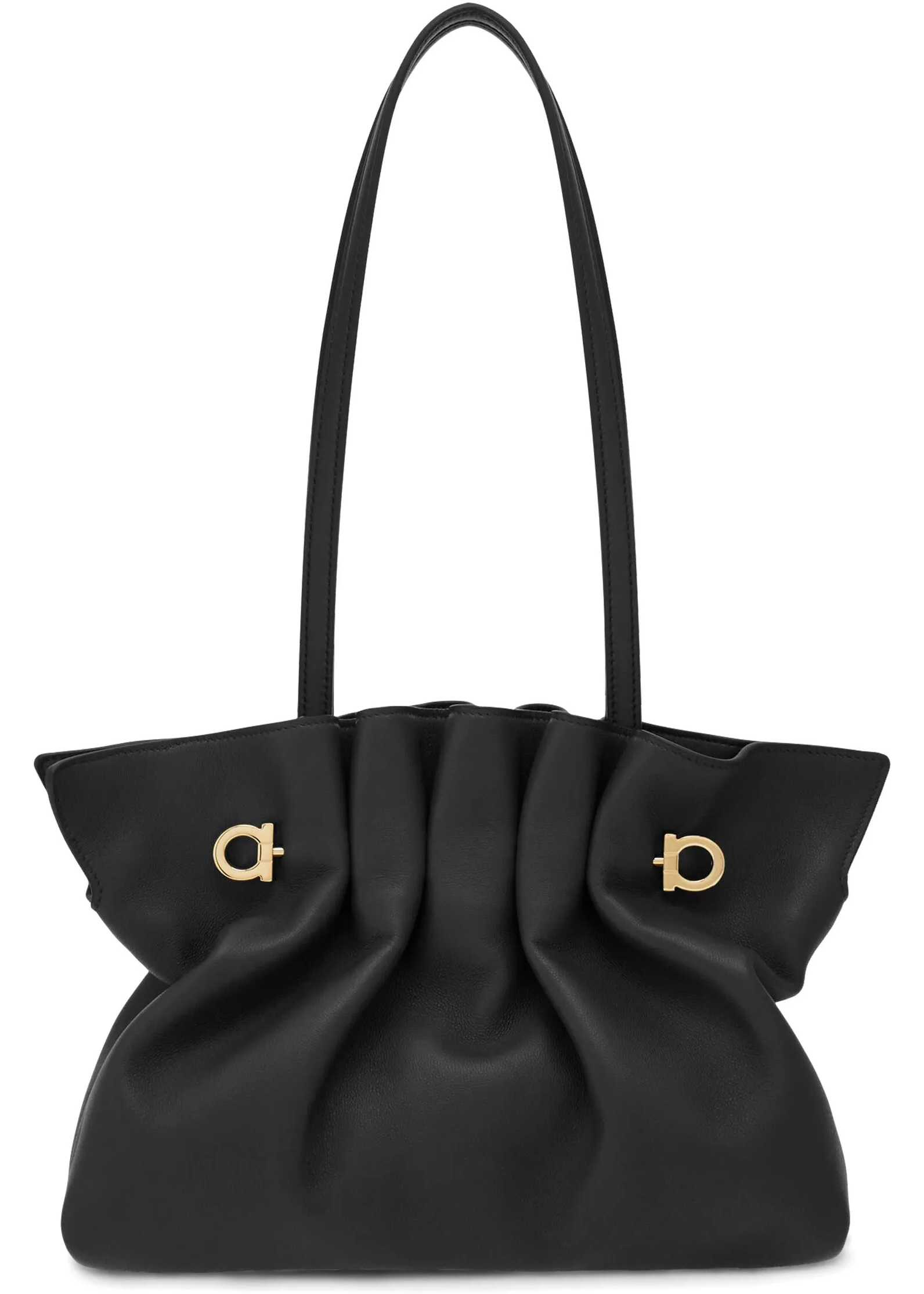 Ferragamo's Soft Shoulder Bag reinterprets an archival model with a modern, refined style. The essential silhouette is enhanced by the softness of nappa leather, while the versatile construction allows it to be worn on the shoulder, over the shoulder or as a clutch. It features an adjustable leather shoulder strap with logoed metal detail and features the brand's iconic signature printed on the front for timeless elegance.