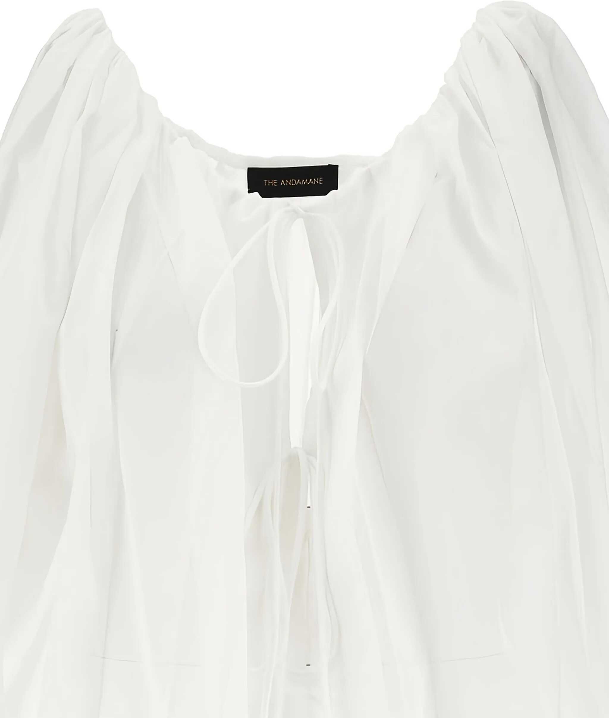The Wilma Blouse by The Andamane is a feminine and versatile garment perfect for the warm season. Made of lightweight cotton, it features wide balloon sleeves with ribbon ties for a romantic touch, an elasticized hemline and an adjustable neckline at the front with double ribbon ties. The loose fit ensures comfort and style, ideal for creating casual yet curated looks.
