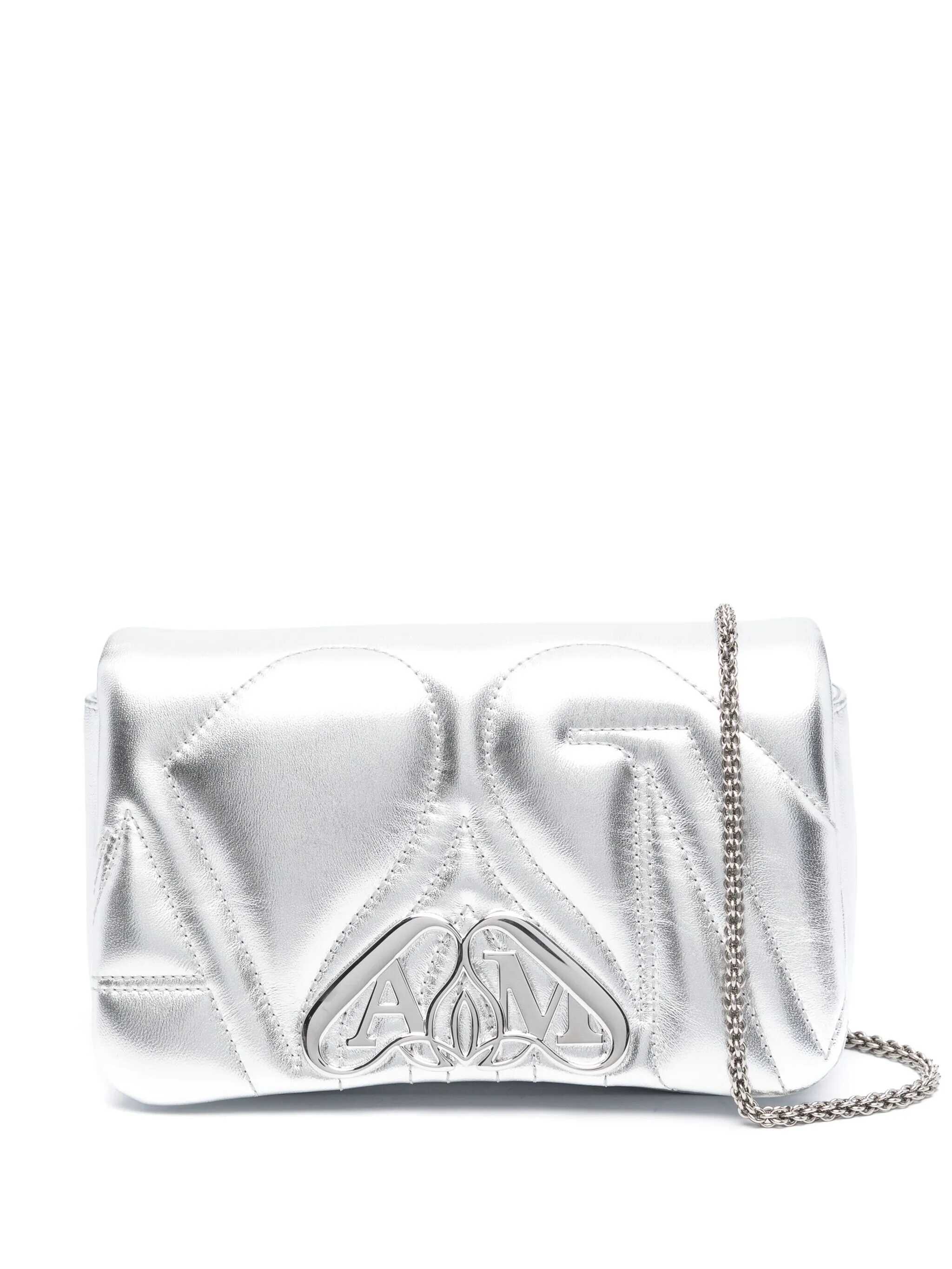 Silver leather mini Seal clutch Width: 22 cm Height: 13 cm Depth: 5 cm Max shoulder strap length: 55 cm