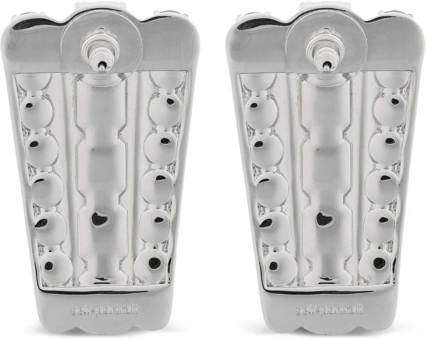 Silver-plated brass earrings embellished with crystals in various sizes. Self-Portrait signature on the back. For pierced ears. Dust bag included.