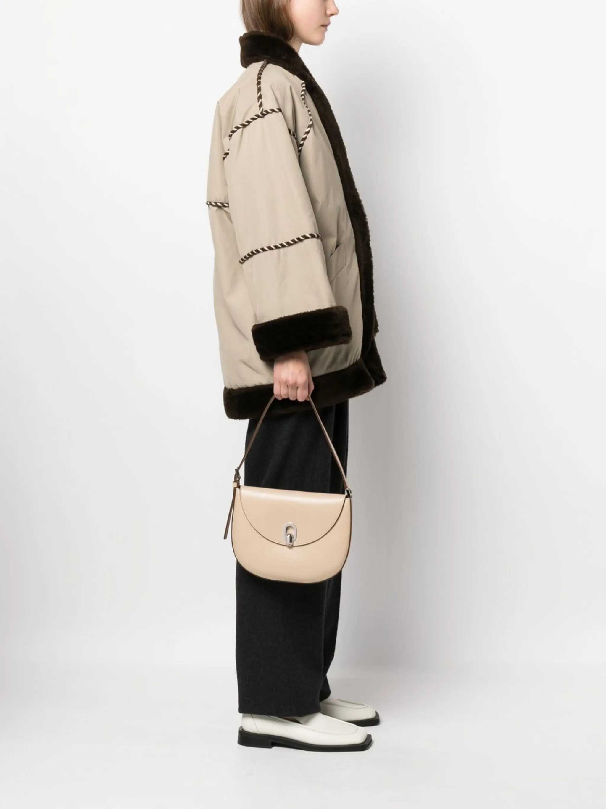 Savette's Tondo leather Shoulder Bag is an elegant and versatile accessory perfect for those seeking a refined and practical design. The front flap and clasp closure adds a sophisticated and secure touch while keeping the design clean and minimalist. The adjustable flat shoulder strap makes it easy to adjust the length for optimal comfort, while the smooth leather design lends a luxurious and timeless look.