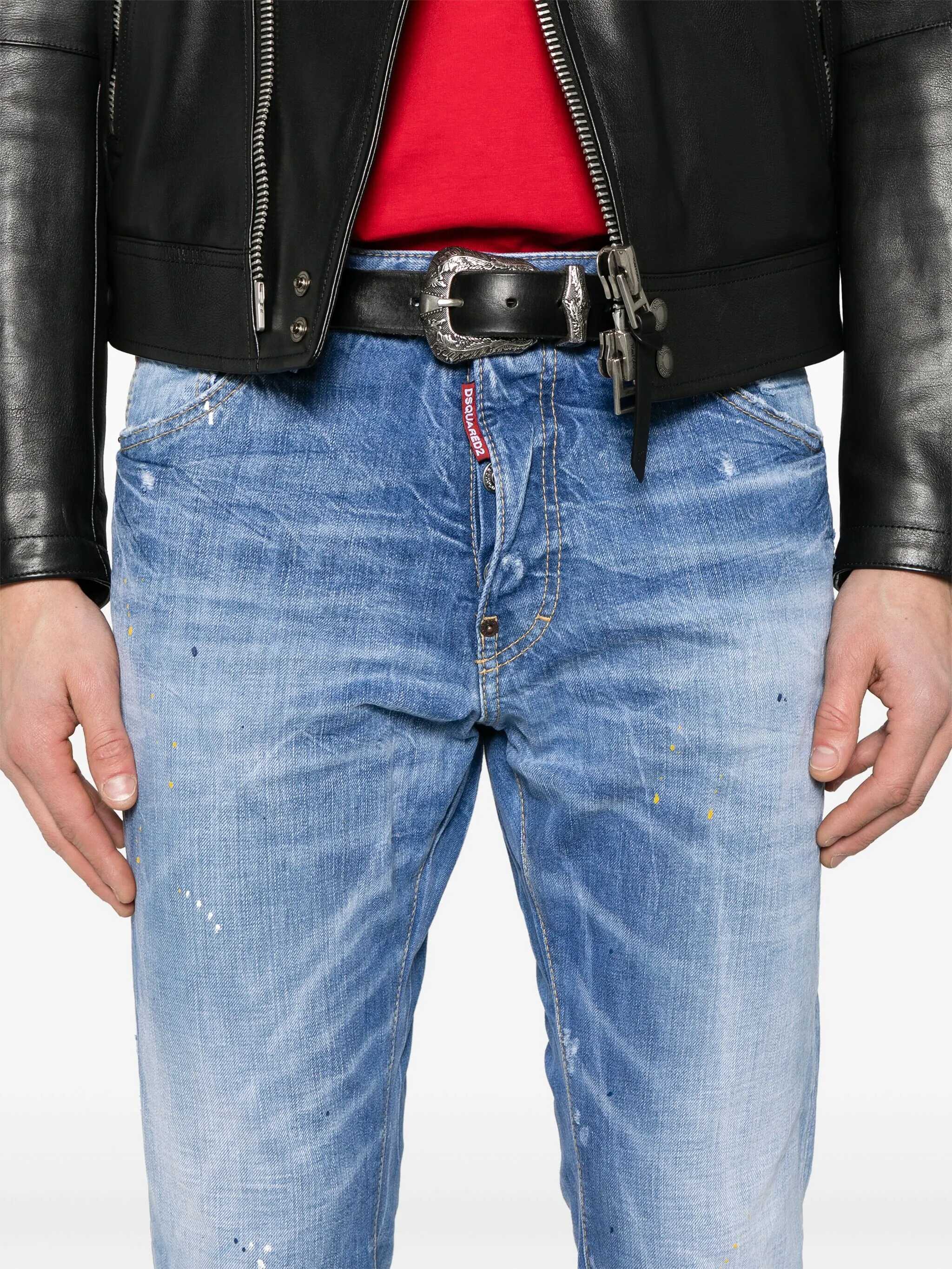'Cool Guy' stretch cotton denim jeans with used-effect details and paint stains, button closure, five pockets, back logo tag