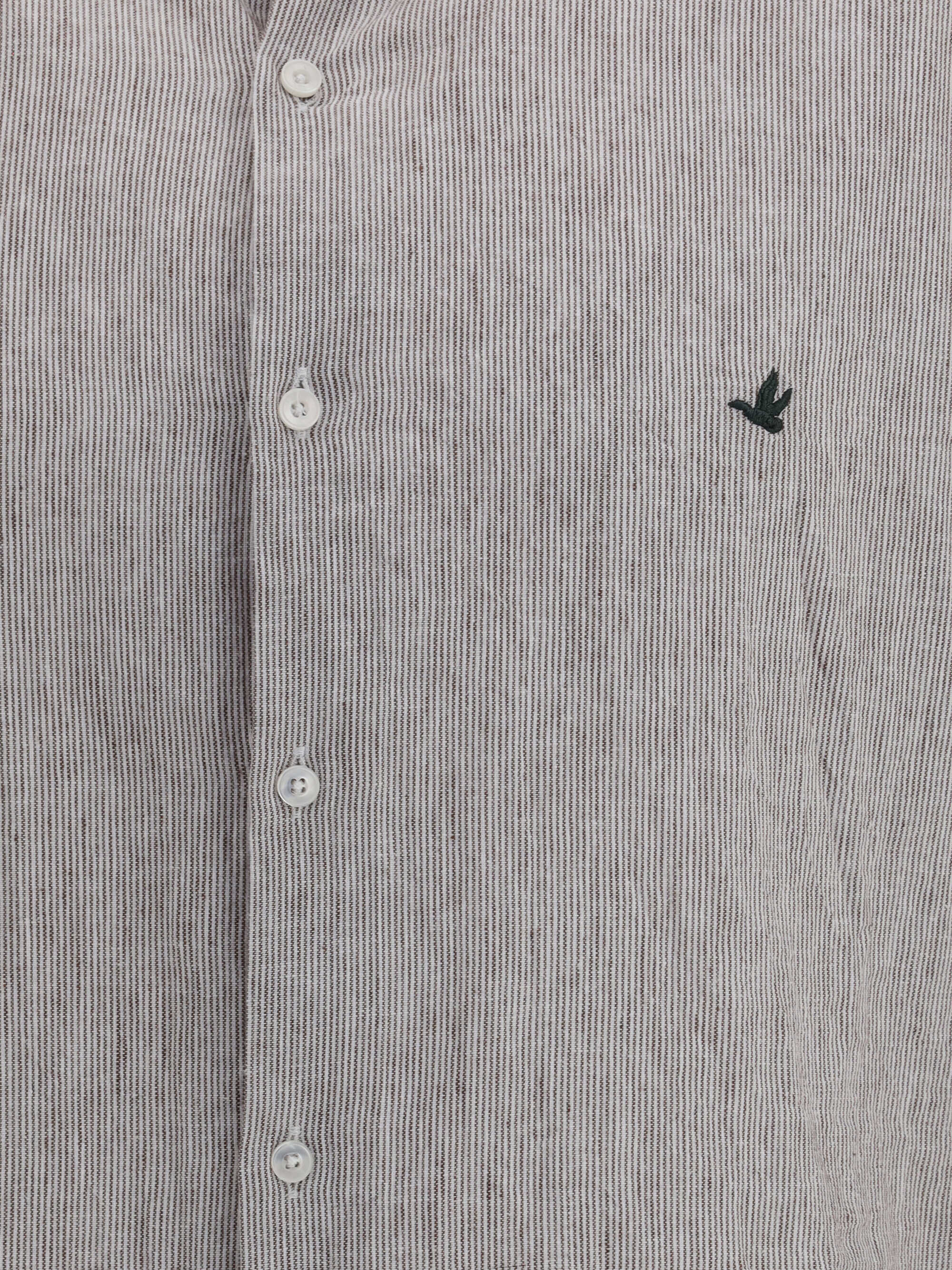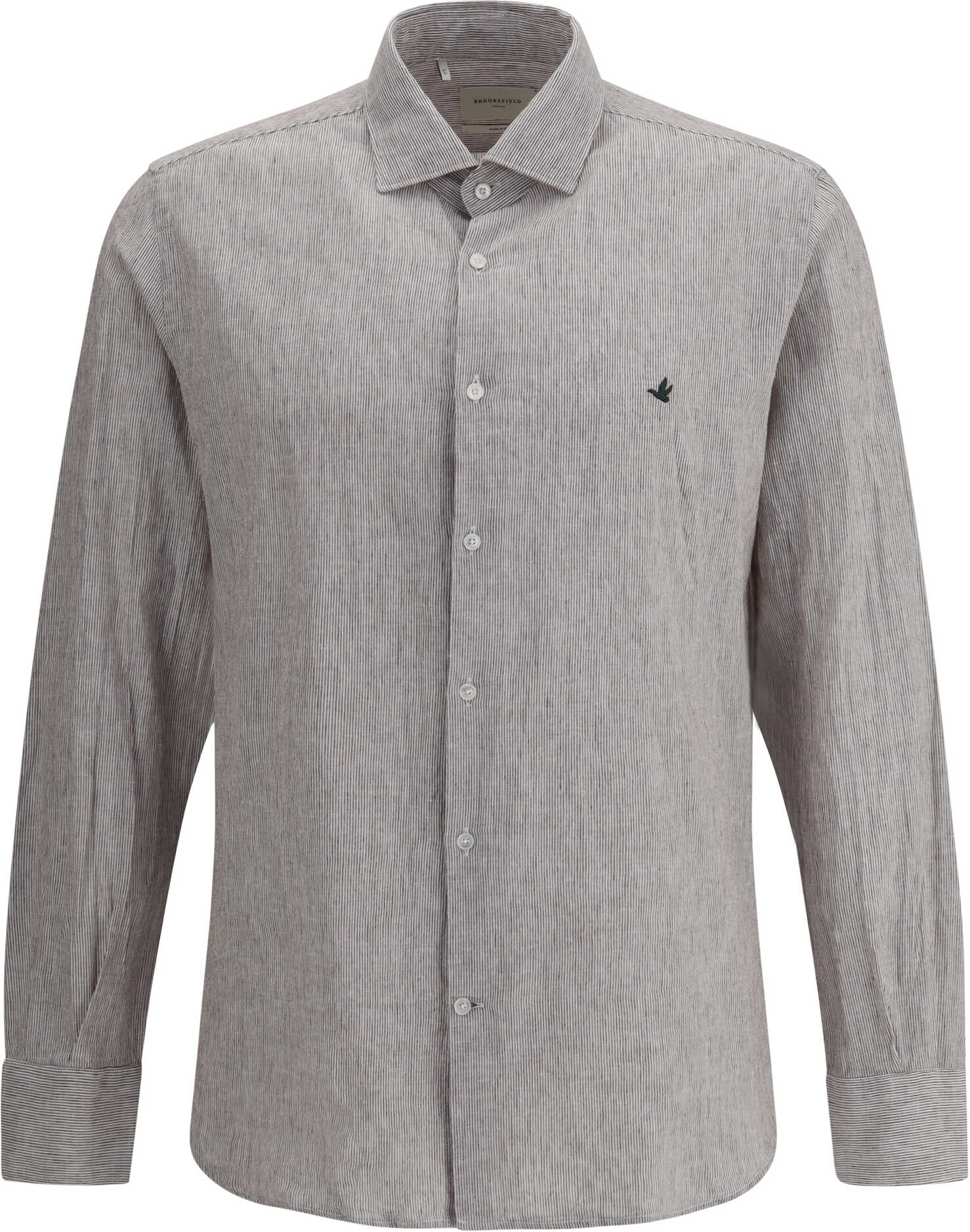 Brooksfield's striped cotton linen Shirt is designed to provide comfort and style on warmer days. It features a classic collar, front button closure and adjustable button cuffs. The striped pattern gives a fresh and dynamic touch, while the iconic embroidered logo on the chest adds a distinctive note to the design.