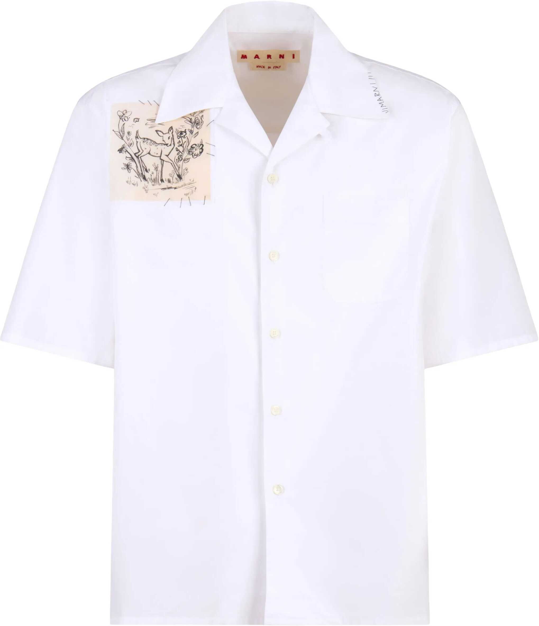 Cotton Shirt by Marni has a contemporary and sophisticated design. The short-sleeved design features a Cuban-style collar embellished with a monogram detail embroidered around the perimeter, front button closure and a welt patch pocket on the chest. An applied black-and-white pattern patch on the front adds a graphic and distinctive touch. Perfect for expressing creative and modern style.