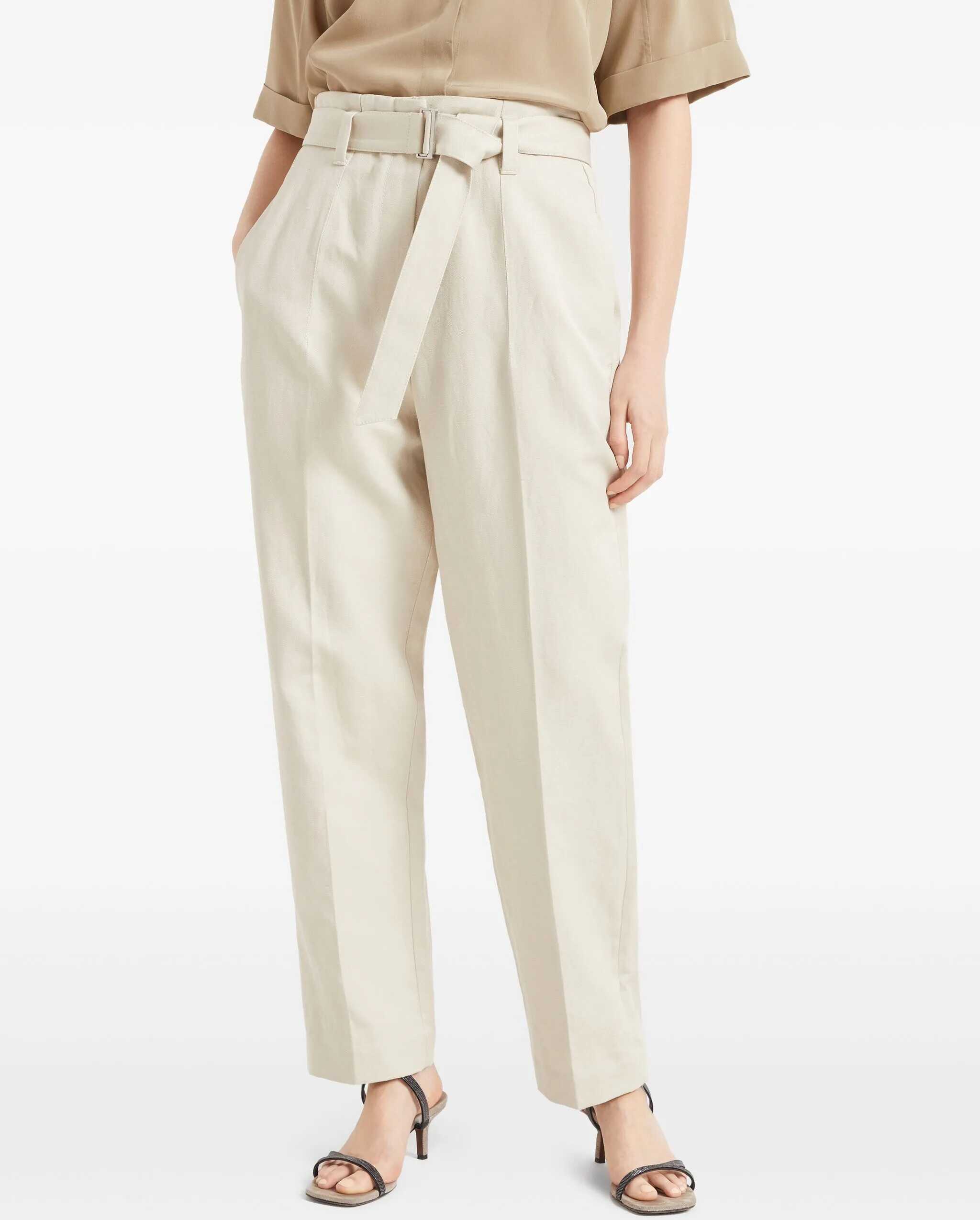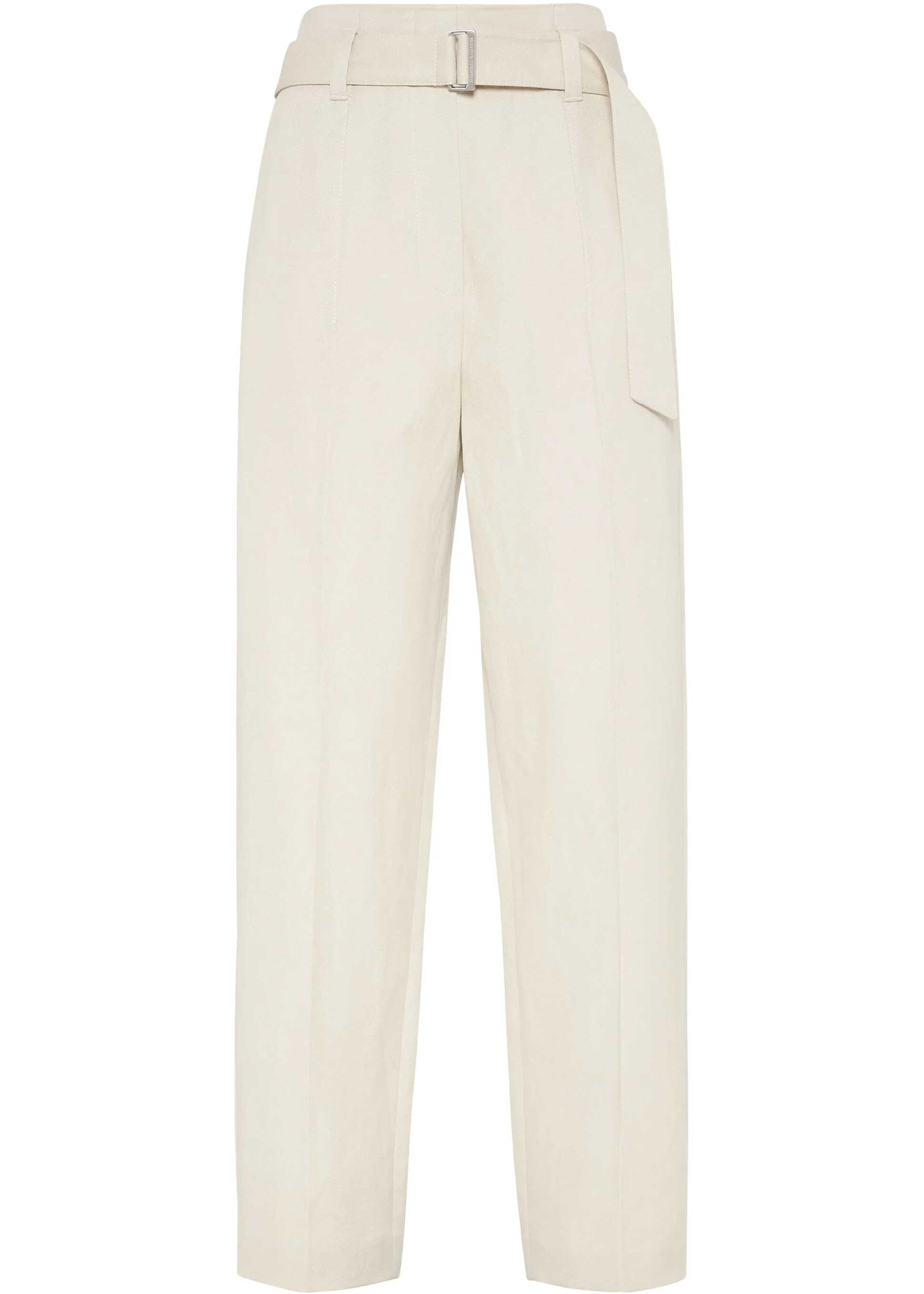 Brunello Cucinelli's linen Pants are a lightweight and sophisticated piece, perfect for the warm season. They feature a front zipper and hook-and-eye closure, accompanied by a matching, removable, buckle-adjustable belt for a customized fit. Waist loops, two side welt pockets and two back pockets add functionality, while the cut that cinches at the bottom gives a modern, refined silhouette.