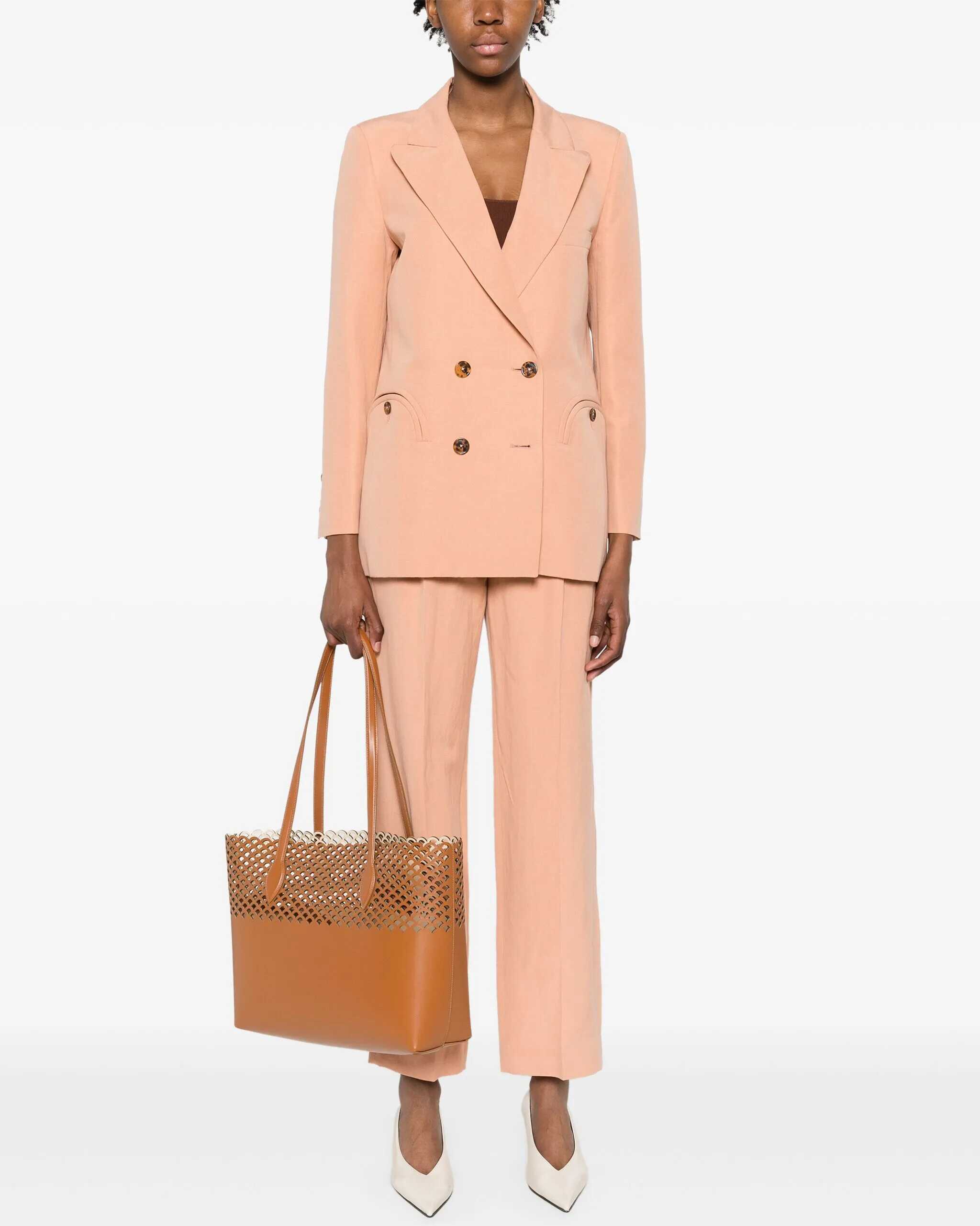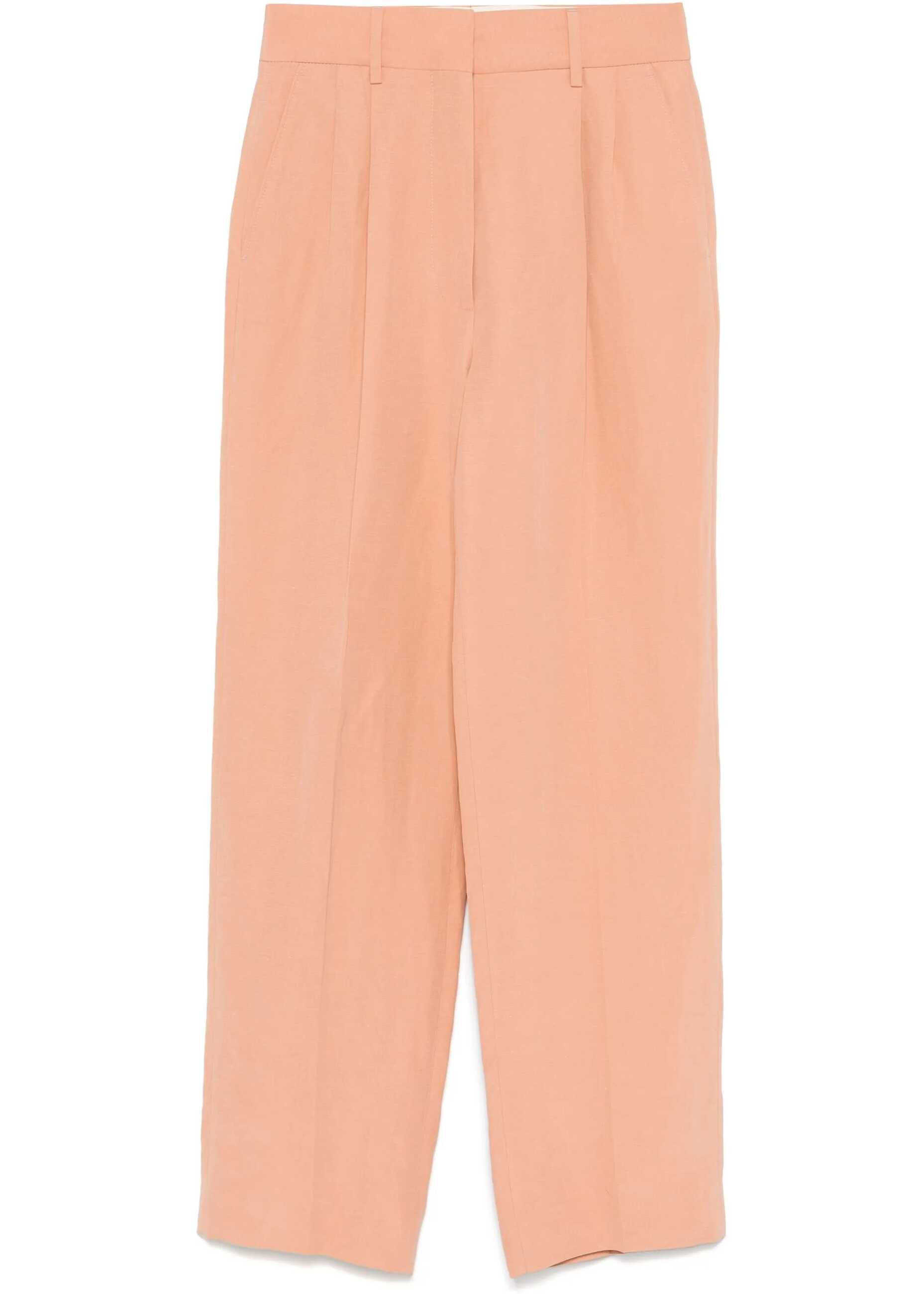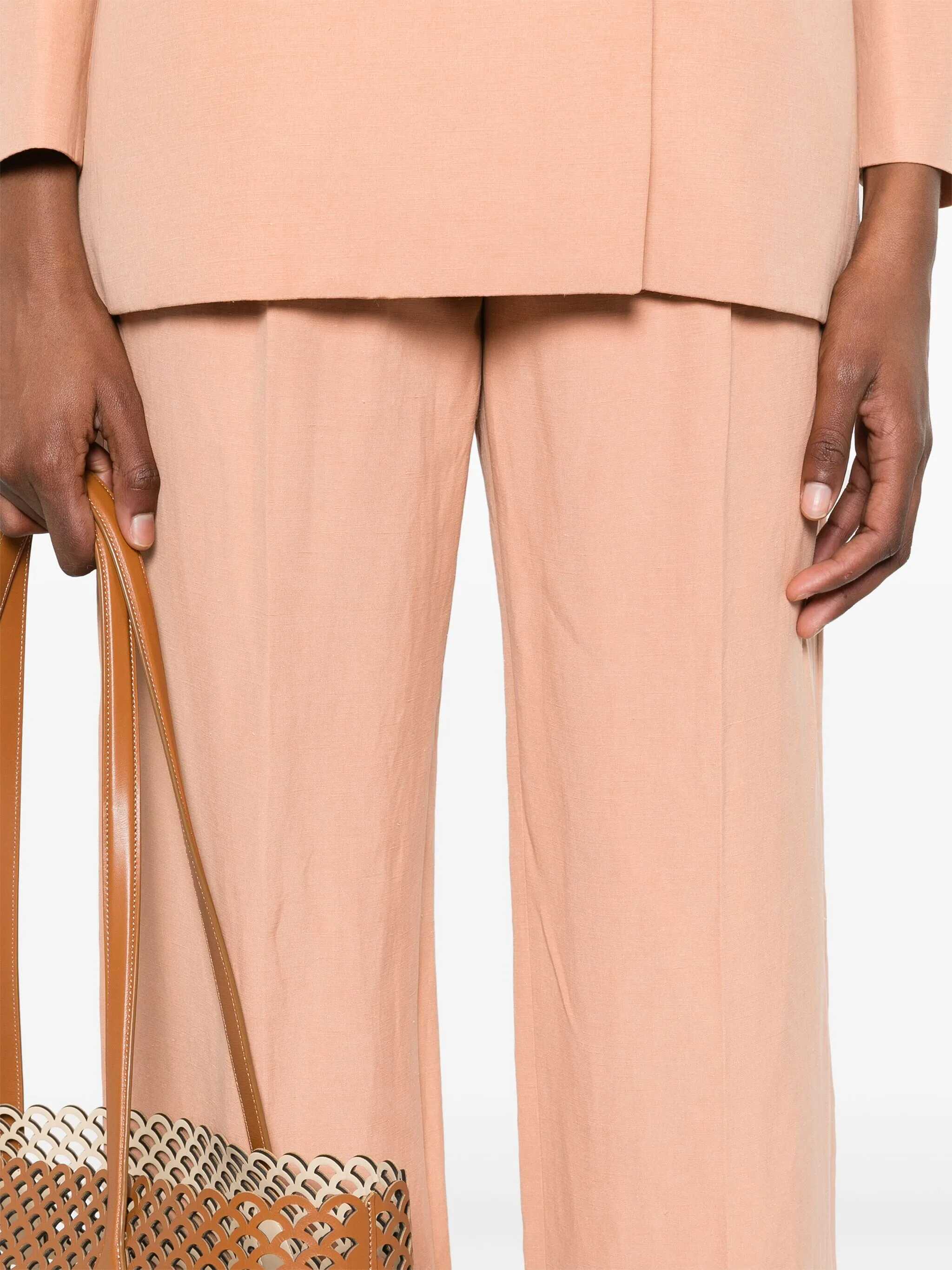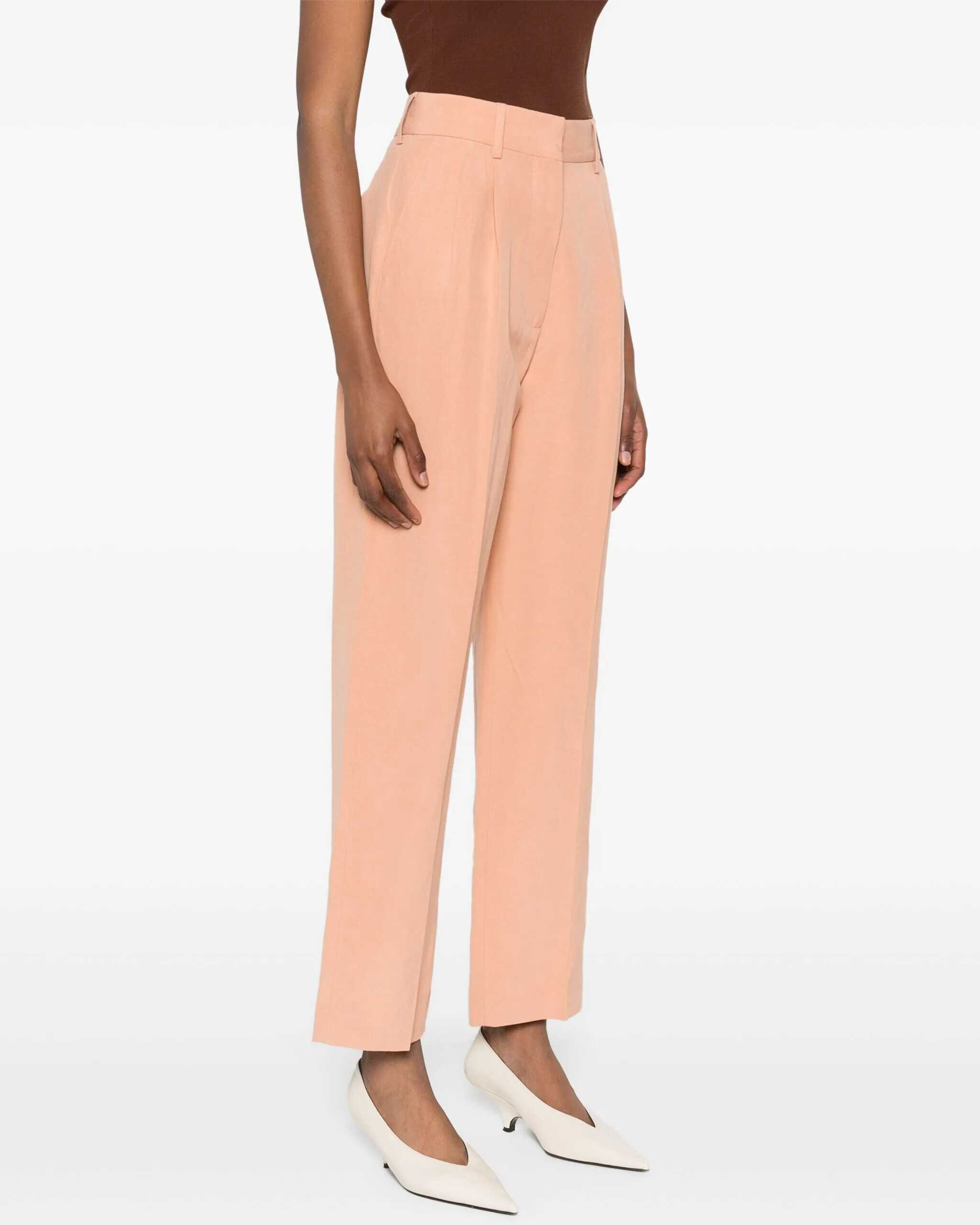 Blazè Milano's signature silk Flica Fox Pants feature a front zipper and hook-and-eye closure. The design is enhanced by two side welt pockets and belt loops at the waist. A semicircular welt pocket on the back panel adds a distinctive detail for a sophisticated and timeless look.