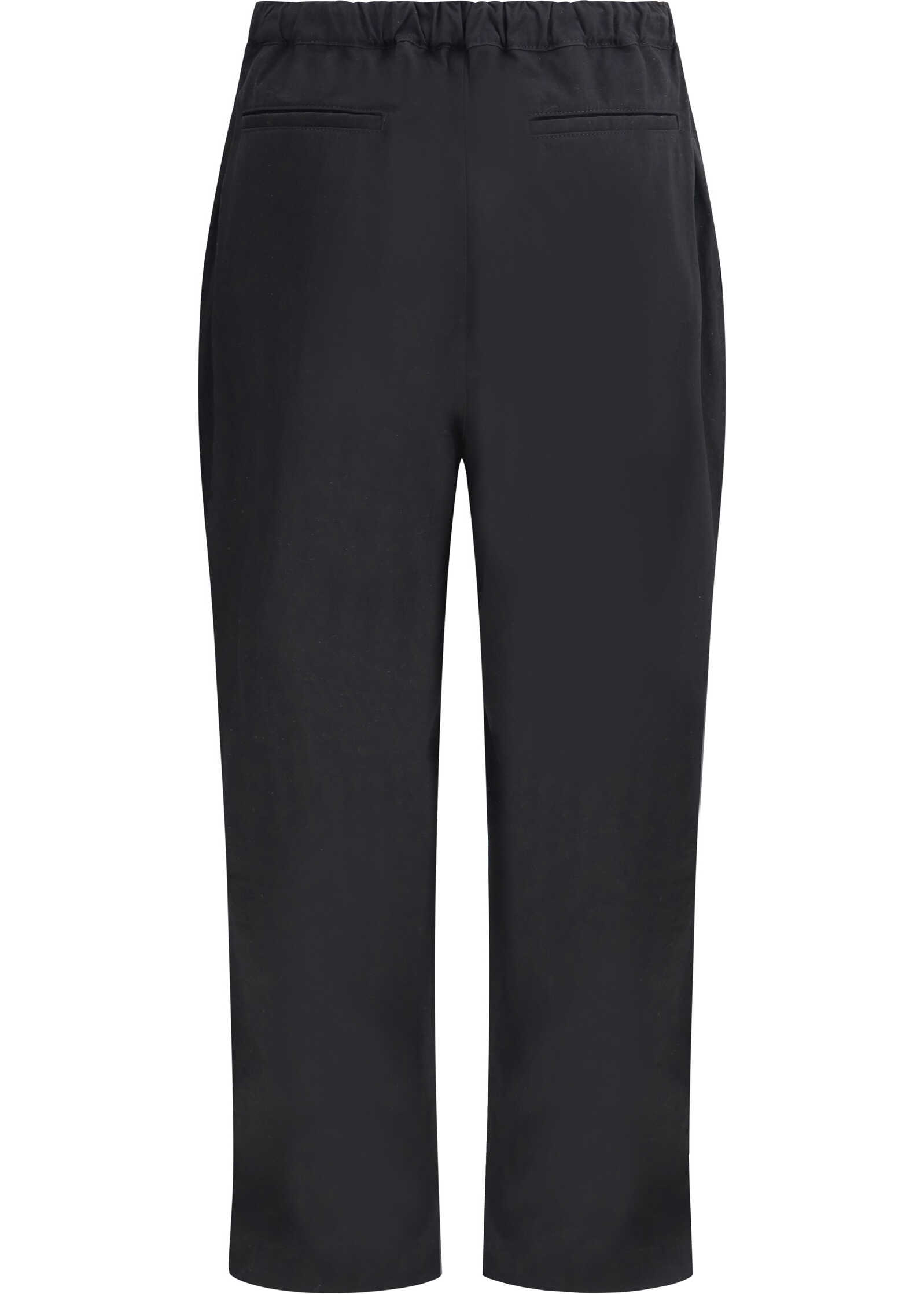 Junya Watanabe's Trousers combine functionality and minimalist design with a contemporary aesthetic. Featuring an elasticized waistband with an adjustable drawstring, they offer a comfortable and versatile fit. The style includes two side welt pockets and two back slit pockets, providing practicality without sacrificing style. The wide legs give the garment a relaxed and modern look, perfect for those seeking comfort and personality in everyday wear.