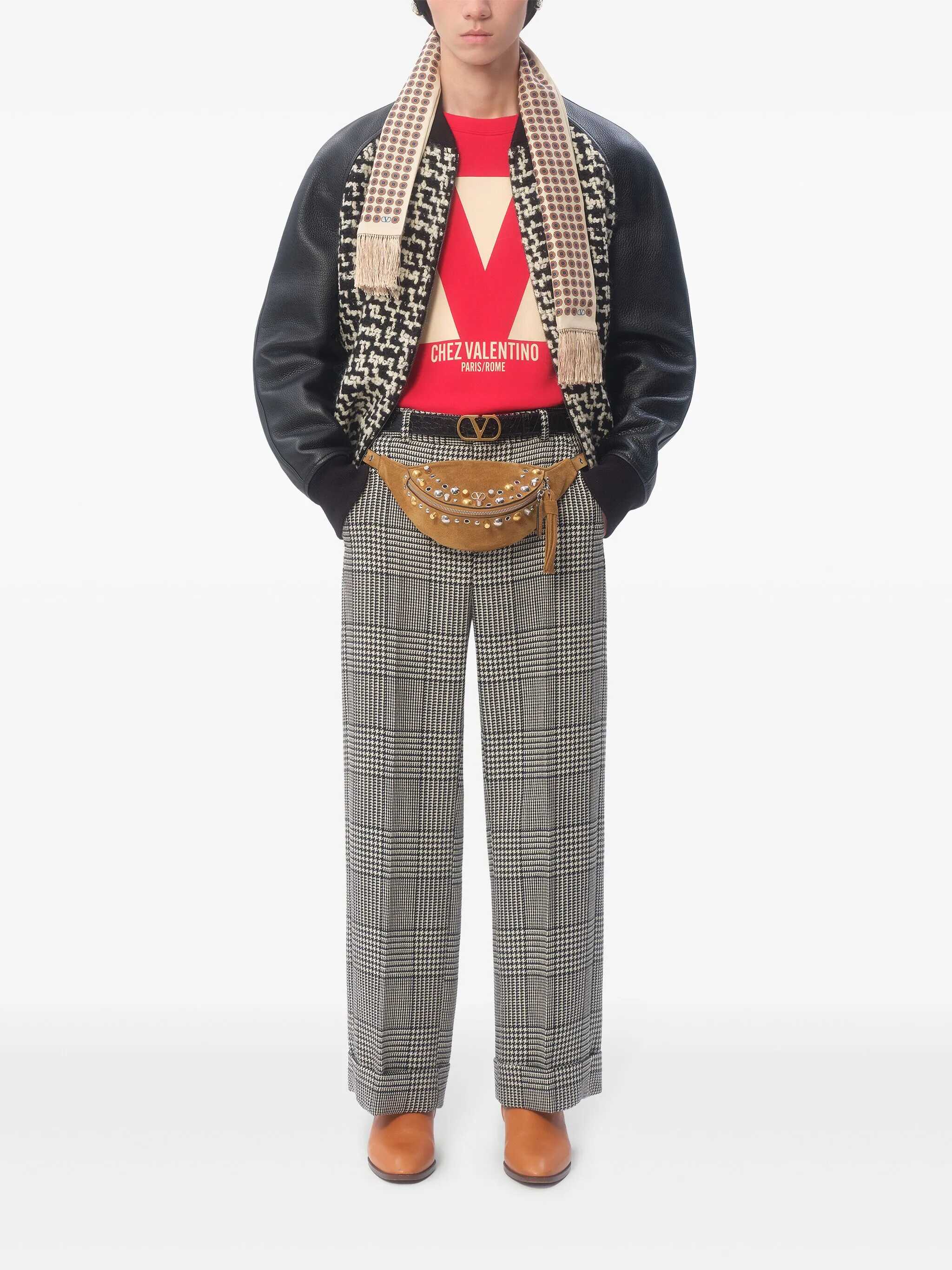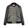 Black/beige calf leather tweed detailing zip fastening long sleeves two side slit pockets ribbed cuffs and hem
