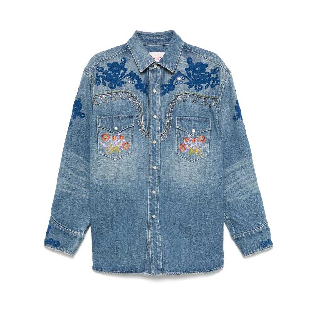 Blue long sleeves front press-stud fastening two chest flap pockets
