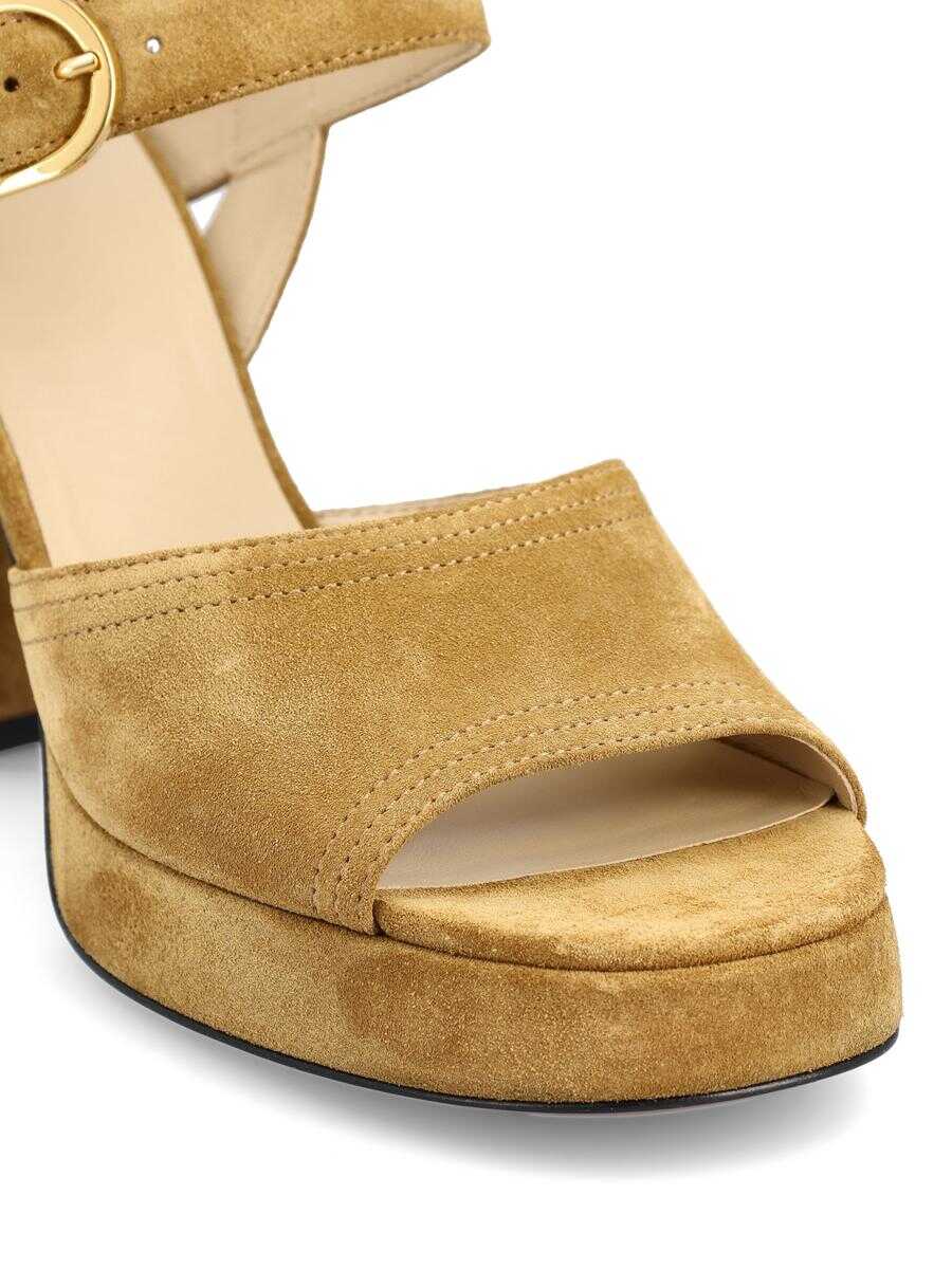 Valentino Garavani's Fawcette sandals reinterpret retro aesthetics with a contemporary twist. Crafted from split calfskin, they feature a covered platform and wide heel, while the Signature metal VLogo detail with an antiqued brass finish adds a distinctive accent. - Upper: calfskin leather - Color: beige - Calfskin leather sole - Signature VLogo with antiqued brass finish - Adjustable strap with buckle closure - Made in Italy - Box included - Item number: 7W2S0MI1DHURDX