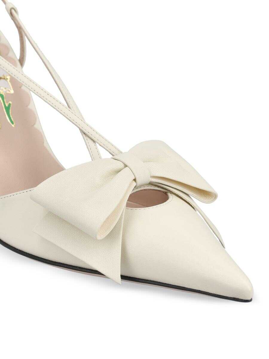 Valentino Garavani "Bowow" slingback pumps in soft white napa leather, embellished with a couture bow that emphasizes its sophisticated femininity. The sleek design with high heel and tapered toe expresses all the timeless elegance of the maison, reinterpreting romantic codes with a contemporary vision. - Upper: leather - Color: white - Leather lining - Leather insole with Valentino Garavani logo - Smooth leather sole - Stiletto heel covered in matching leather - Adjustable slingback strap closure - Made in Italy - Box included - Item number: 7W2S0MX5DDT098