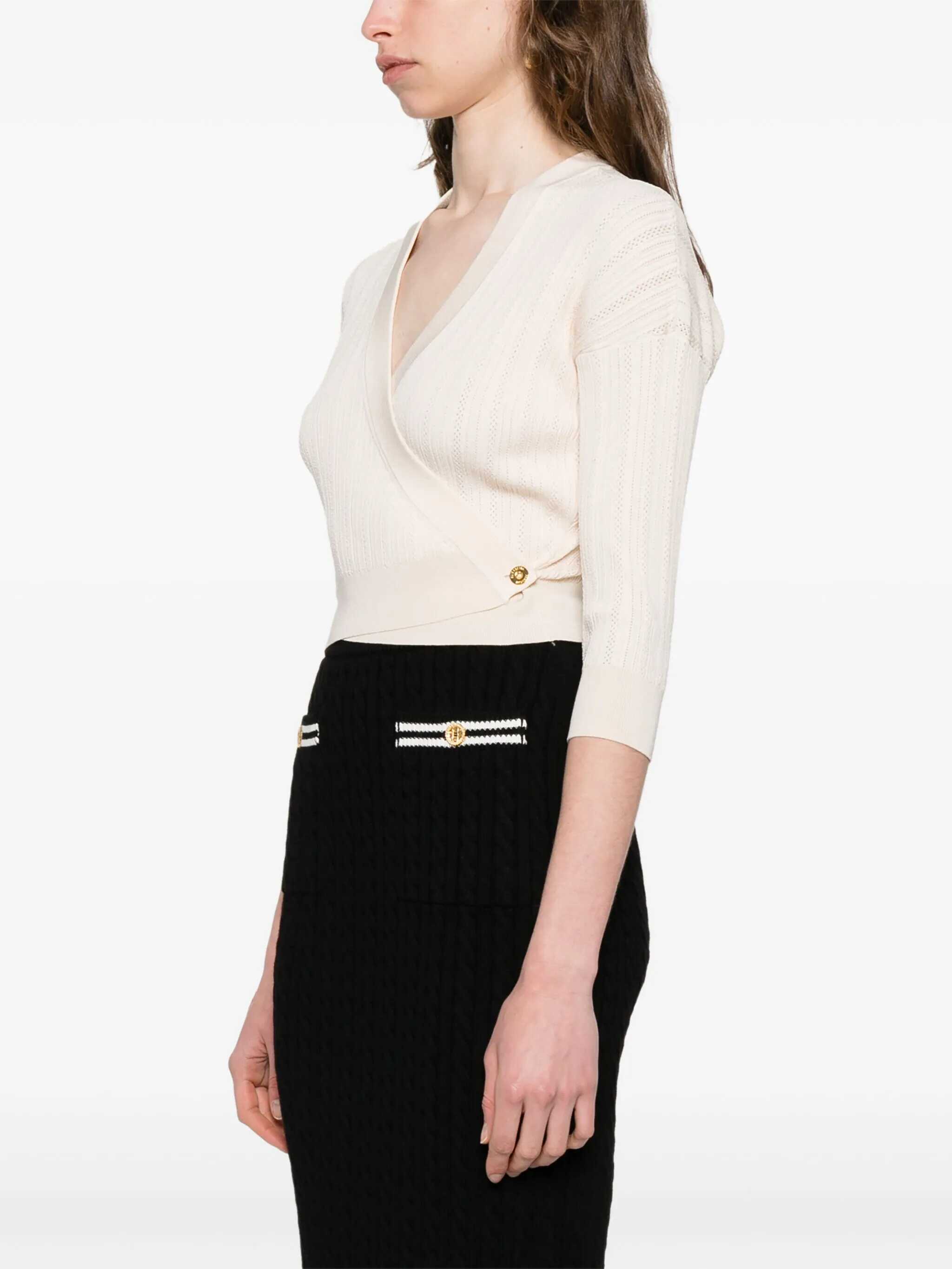 Butter knit V-neck top from Elisabetta Franchi featuring side button fastening sleeves ribbed cuffs and hem