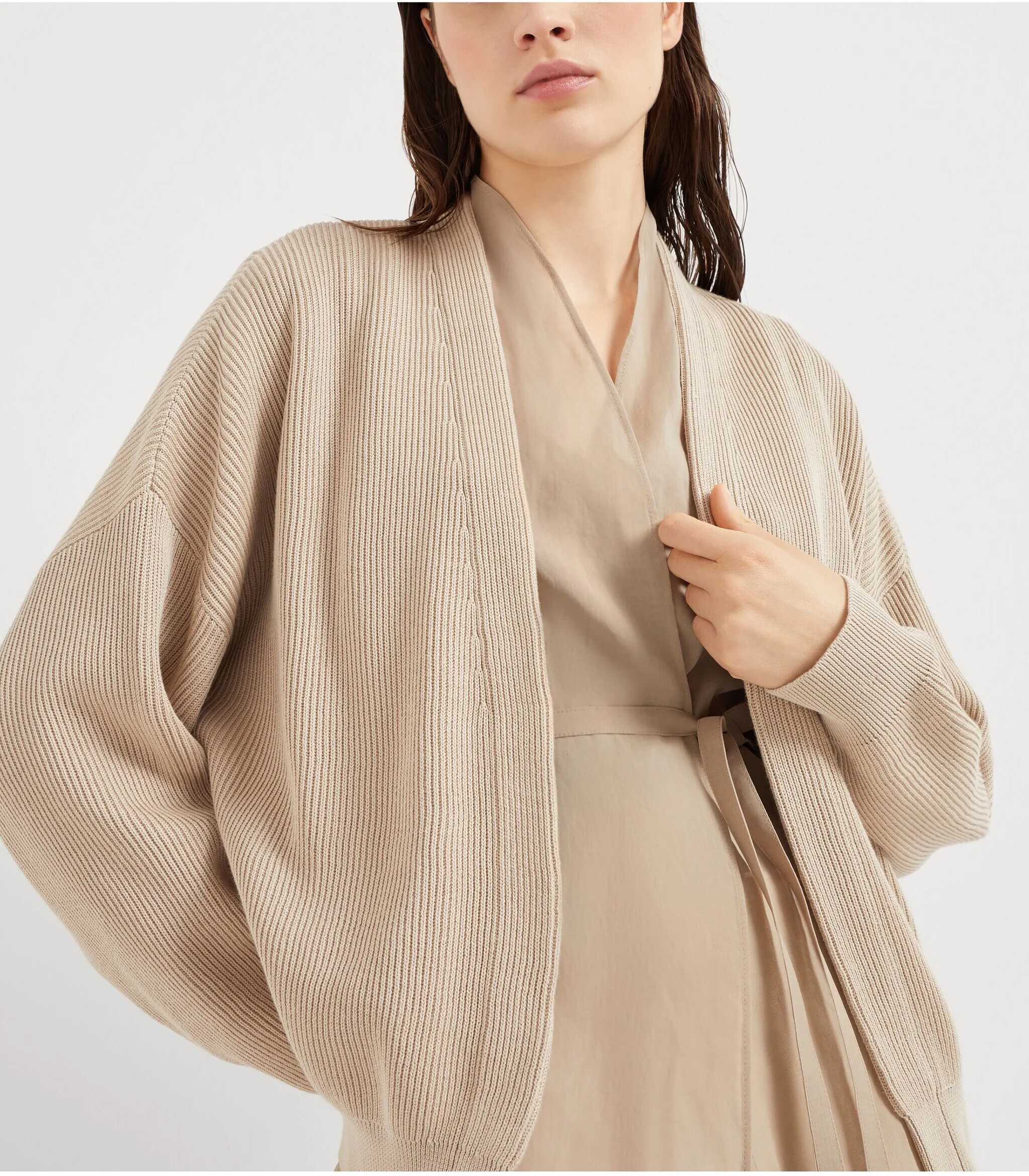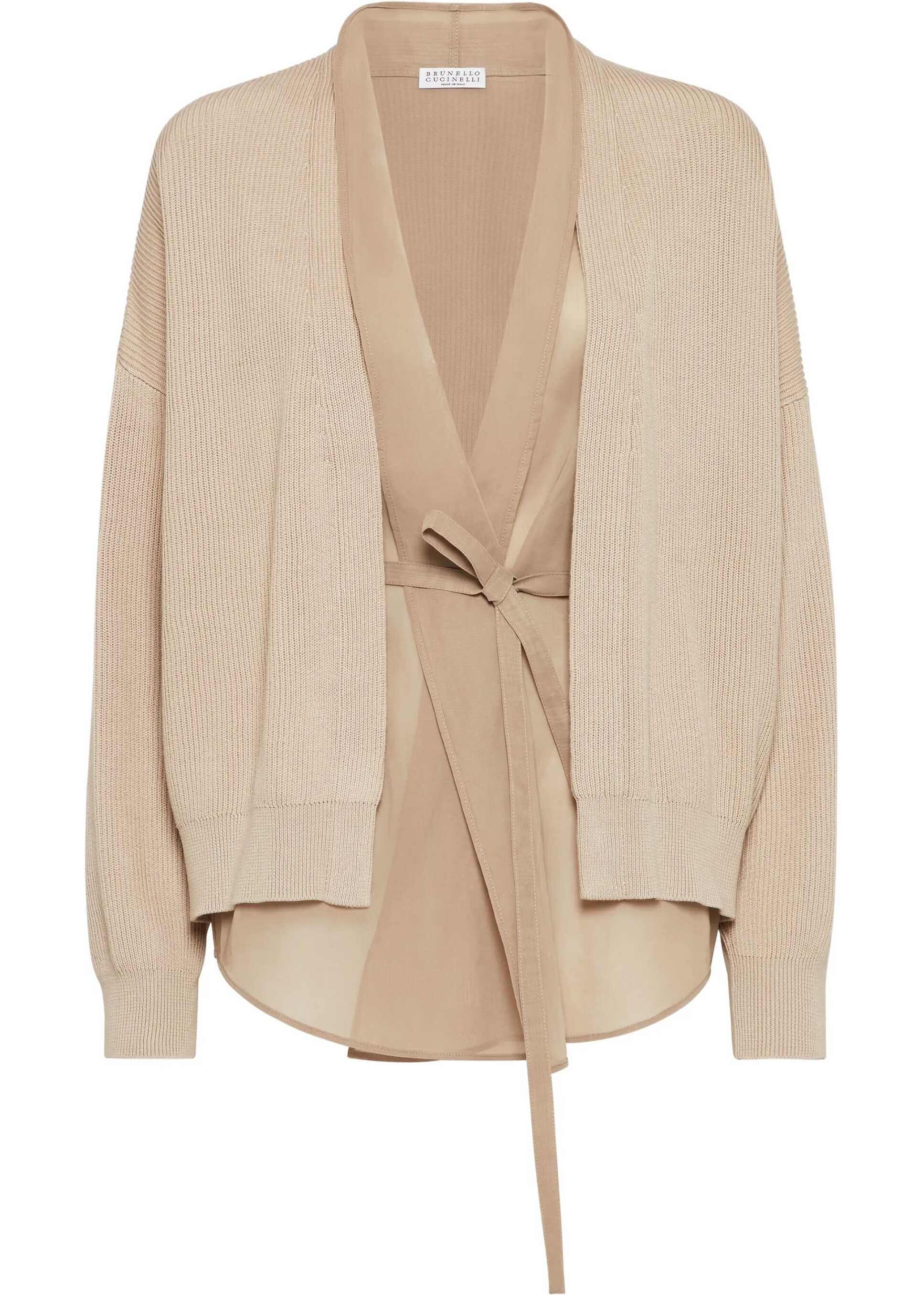 Brunello Cucinelli's Layered Cardigan is a garment with a sophisticated and dynamic style, featuring a wallet and ribbed design that accentuates the texture. The front bow closure adds a delicate touch, while the slit at the front gives an elegant and modern detail, perfect for creating a refined yet comfortable look.