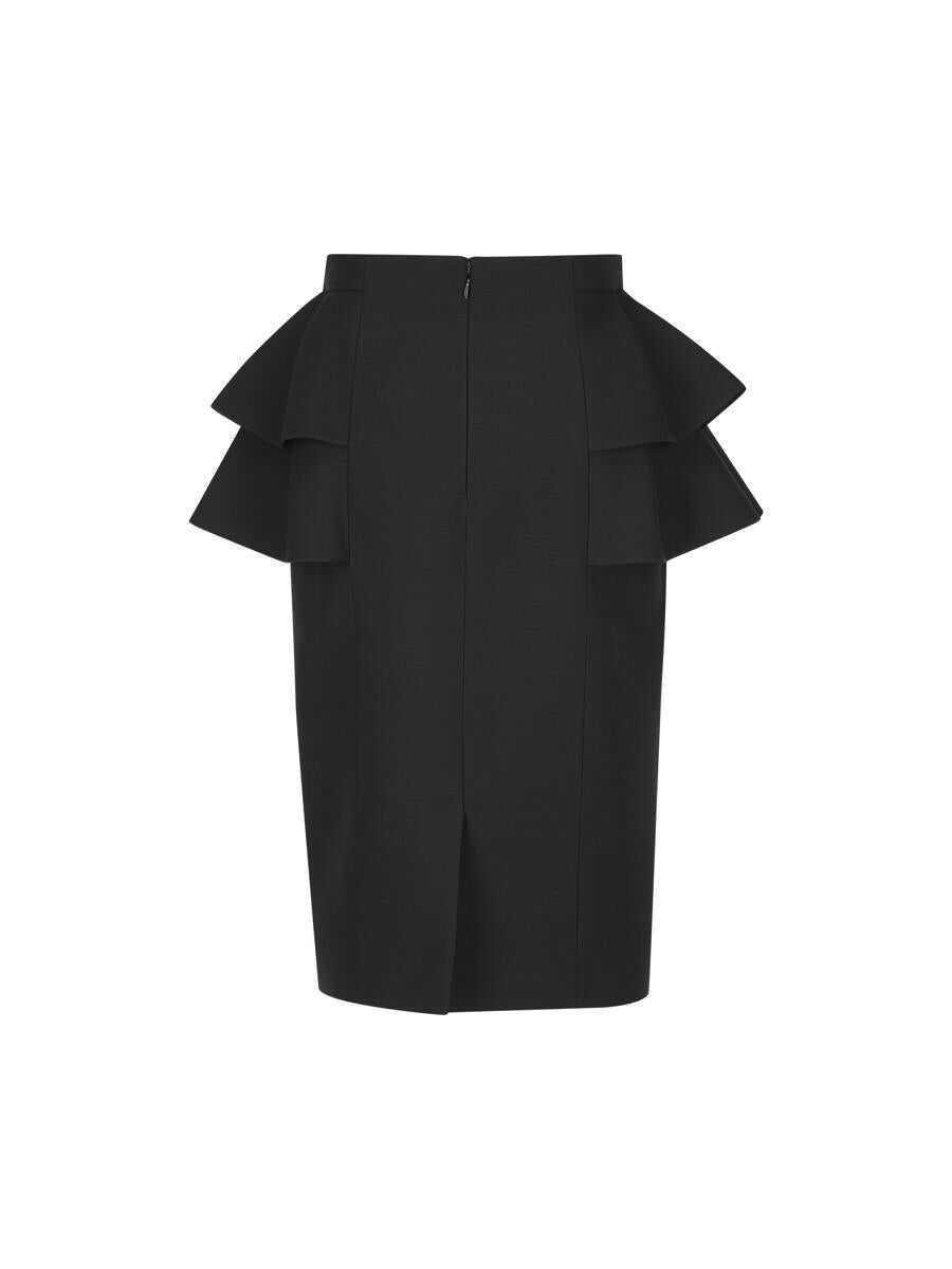 Valentino crepe couture midi skirt, an essential garment with a clean, sophisticated style. The tailored construction, combined with the quality of the fabric, gives the model a structured yet light elegance. - Material: 65% Virgin Wool, 35% Silk - Color: black - Habotai lining: 100% silk - High waist - Clean hem - Invisible back zipper closure - Ruffles at hips - Made in Italy - Item code: 7B3RADJ51CF0NO