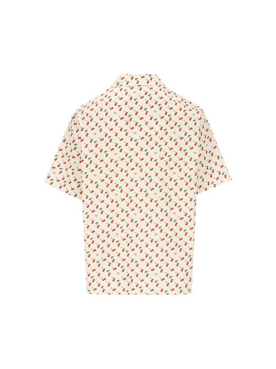 Valentino bowling shirt in cotton poplin with "Cherryfic" print, a fresh and graphic garment that combines irony and summer style. The relaxed silhouette and all-over pattern give the shirt a playful and contemporary character. - Material: 100% cotton - Color: beige and red - Cherryfic print all over - Front button closure - Made in Italy - Item code: 7V3AA111B0BBMY