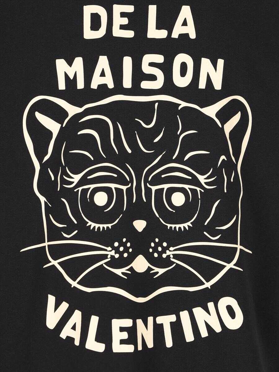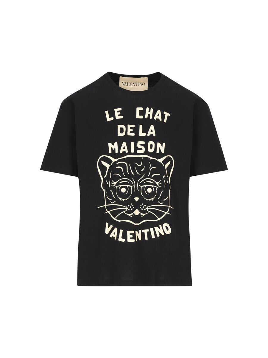 Valentino cotton T-shirt with "Chat de la Maison" print, an ironic and refined garment that tells the creative spirit of the maison with a playful tone. The regular cut and the exclusive graphic make this T-shirt perfect to enrich the daily wardrobe with a signature touch. - Material: 100% cotton - Color: black - "Chat de la Maison" front print - Ribbed crew neck - Short sleeves - Straight hem - Made in Italy - Item code: 7V3MG16PB329RA