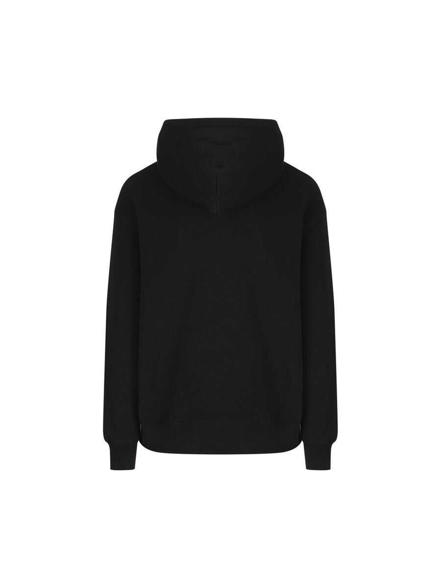 Cotton sweatshirt signed Valentino with "Chat de la Maison" patch, a garment that combines comfort and graphic style with the sophisticated irony typical of the maison. The applied detail on the chest adds personality to an essential design. - Material: 100% cotton - Color: black - Embroidered "Chat de la Maison" patch - Ribbed crew neck - Long sleeves - Ribbed hem and cuffs - Made in Italy - Item code: 7V3MF28NB339RA