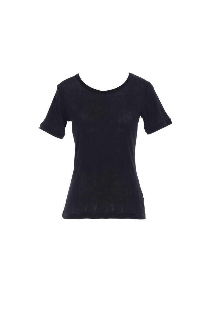 Yohji Yamamoto t-shirt crafted from black ribbed cotton jersey. Featuring a crew neckline, short sleeves, and a straight hem.