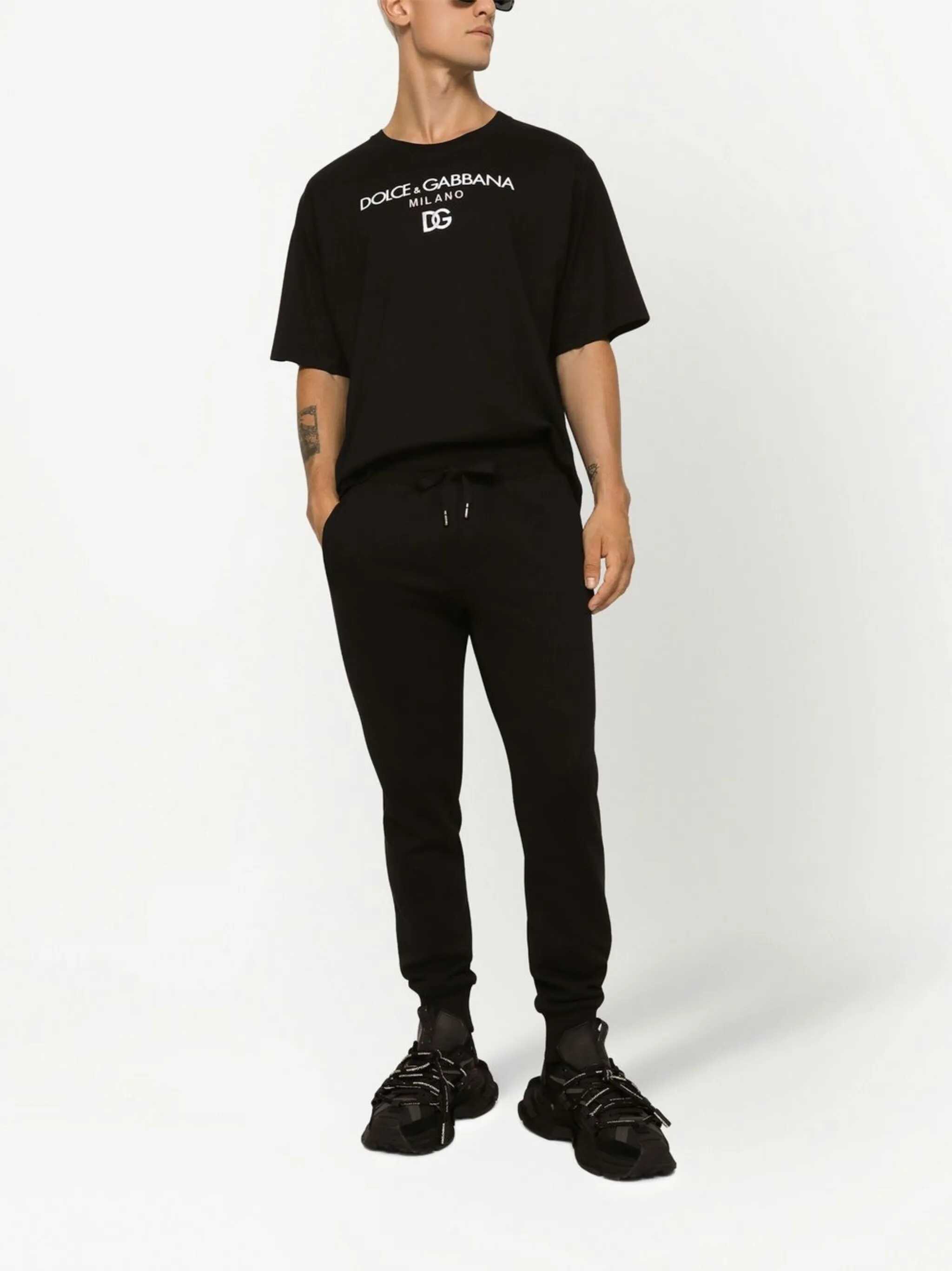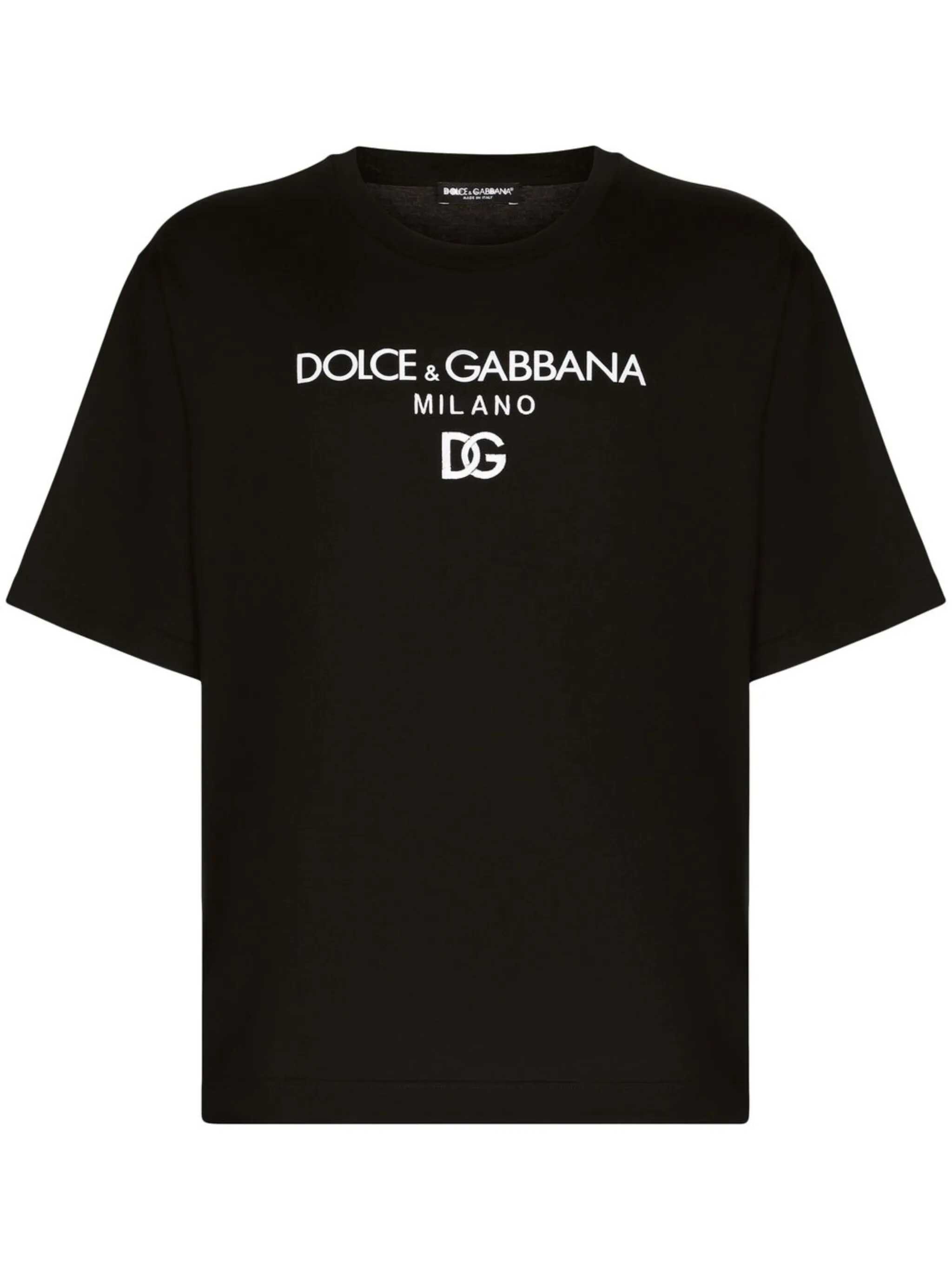 'DG Essential’ cotton, crewneck t-shirt with front embroidery and a flocked logo, and short sleeves