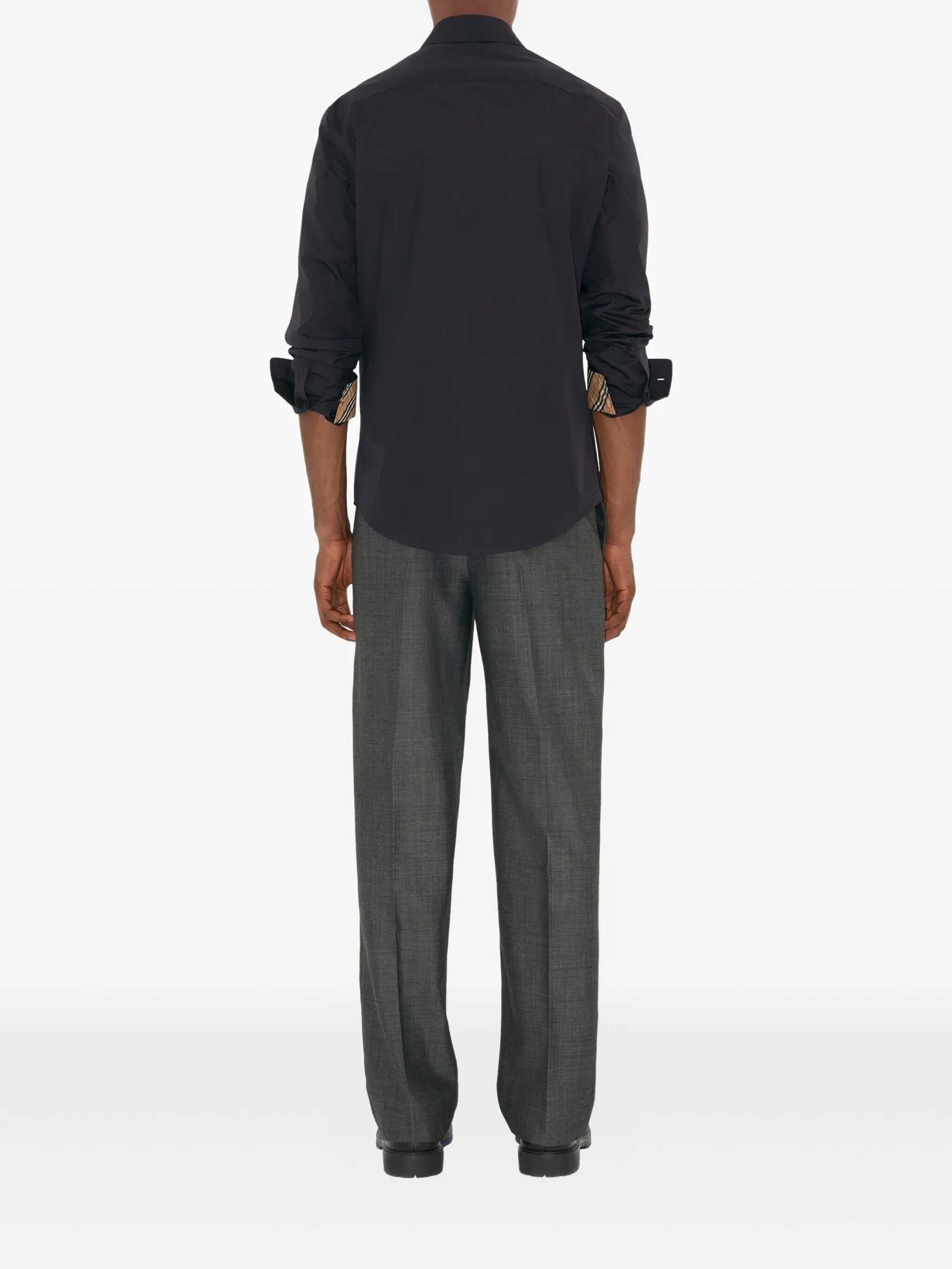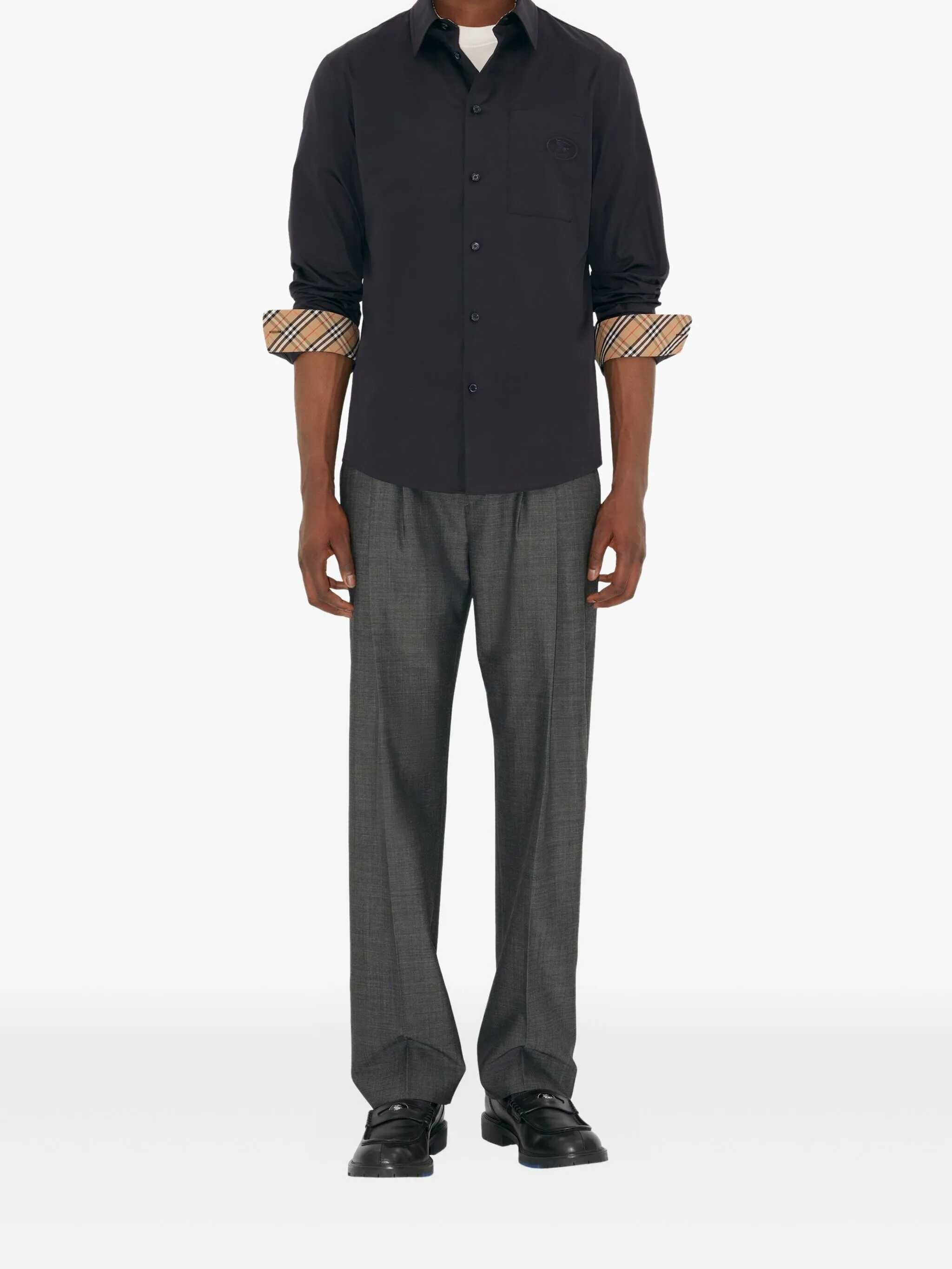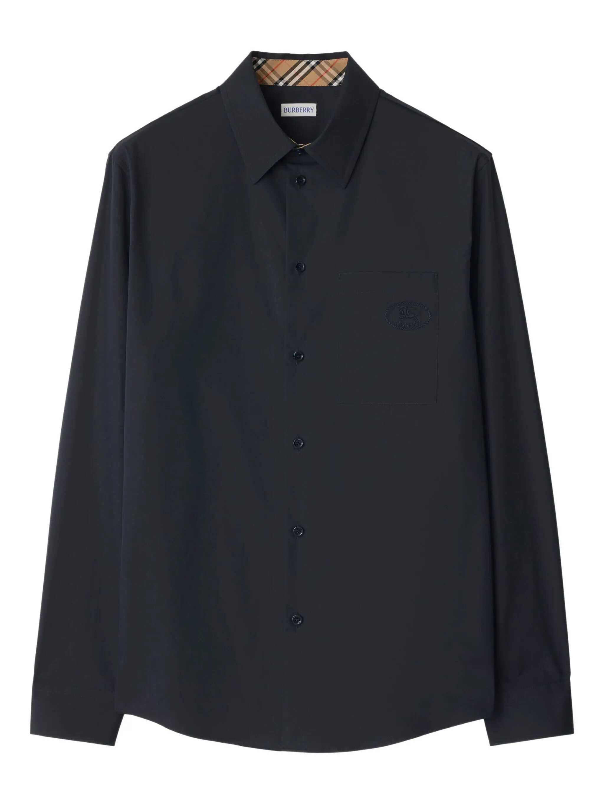 Italian cotton poplin shirt with regular fit. Tone-on-tone Knight Stamp detail and Burberry Check in turned-up cuffs. Button closure, pointed collar and front pocket. Classic elegance and everyday comfort.