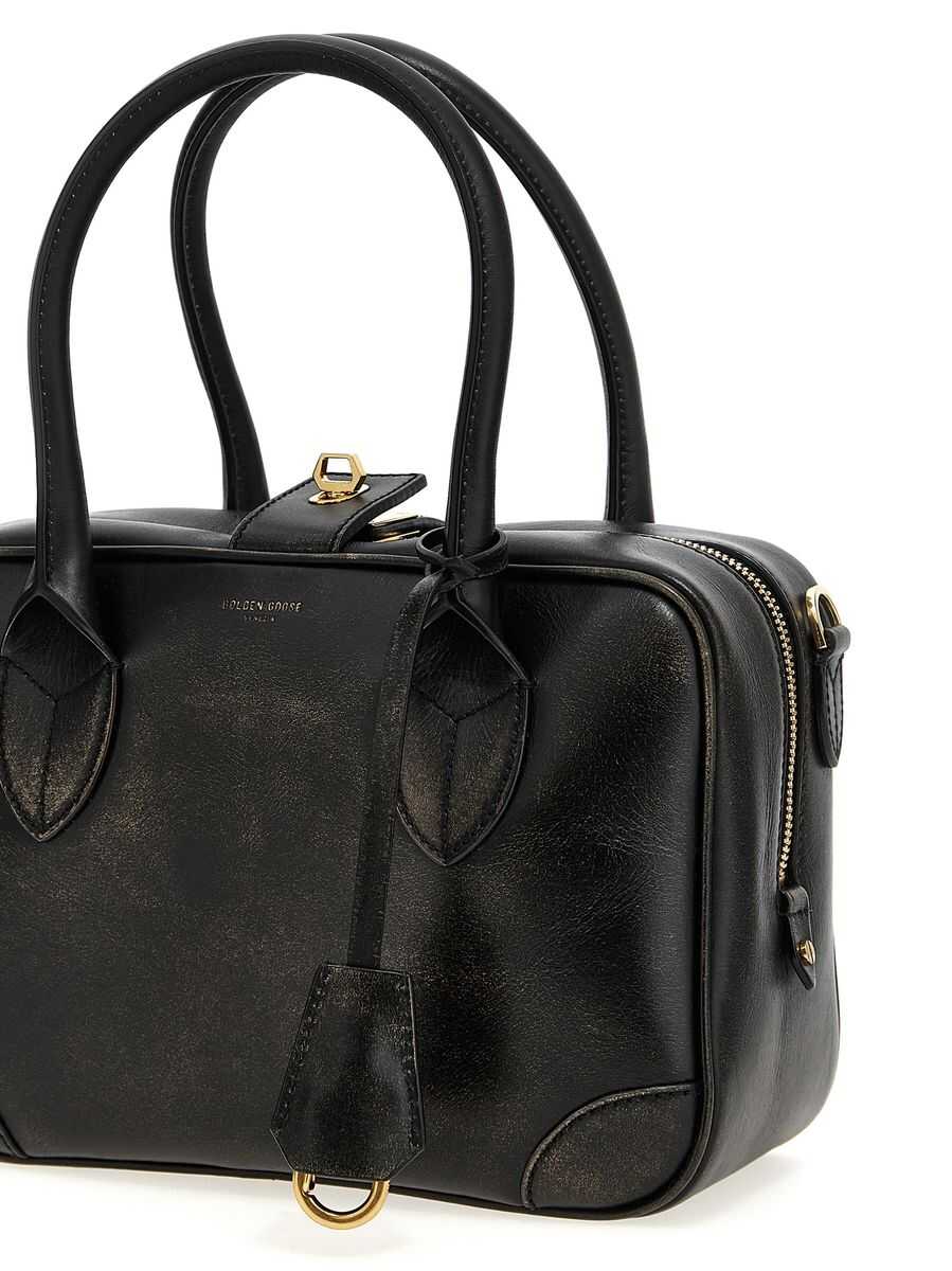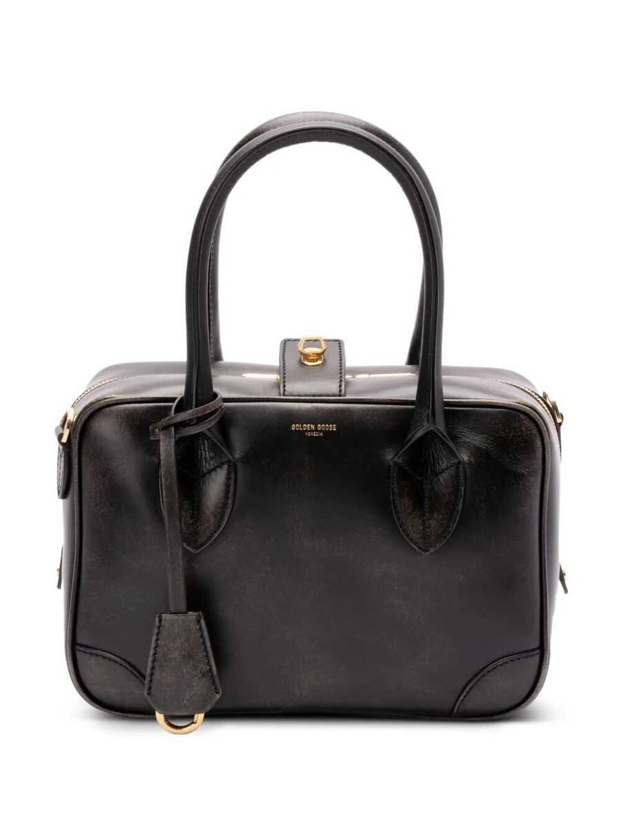 'Vita Bag' vintage-effect leather handbag with front embossed logo, double fixed handle, double closure: zip and key, adjustable and removable shoulder strap