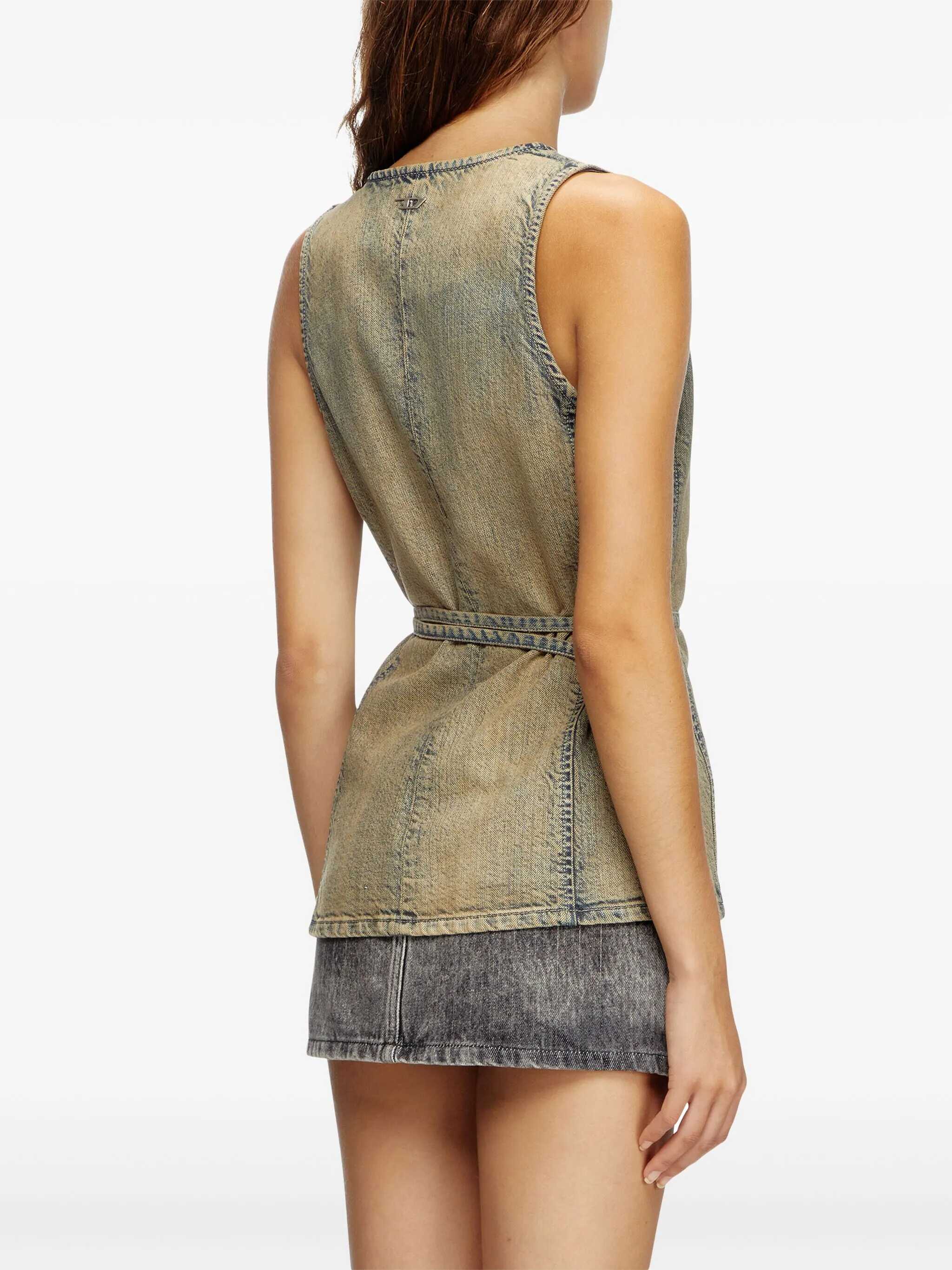 Diesel's Cotton De-Vern top is crafted from denim with a wrap design that fastens with a drawstring waist. The V-neckline at the front enhances the silhouette, while the structured cut best expresses the brand's bold, contemporary style.