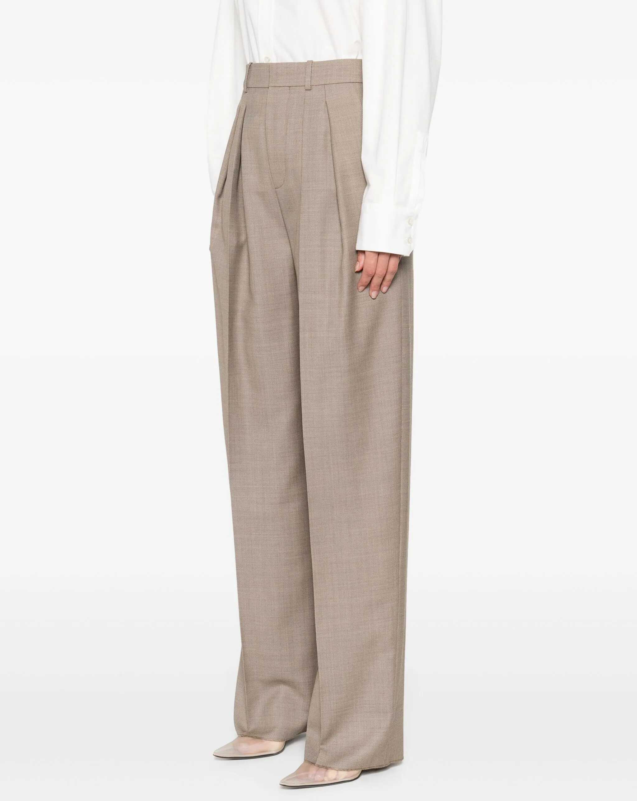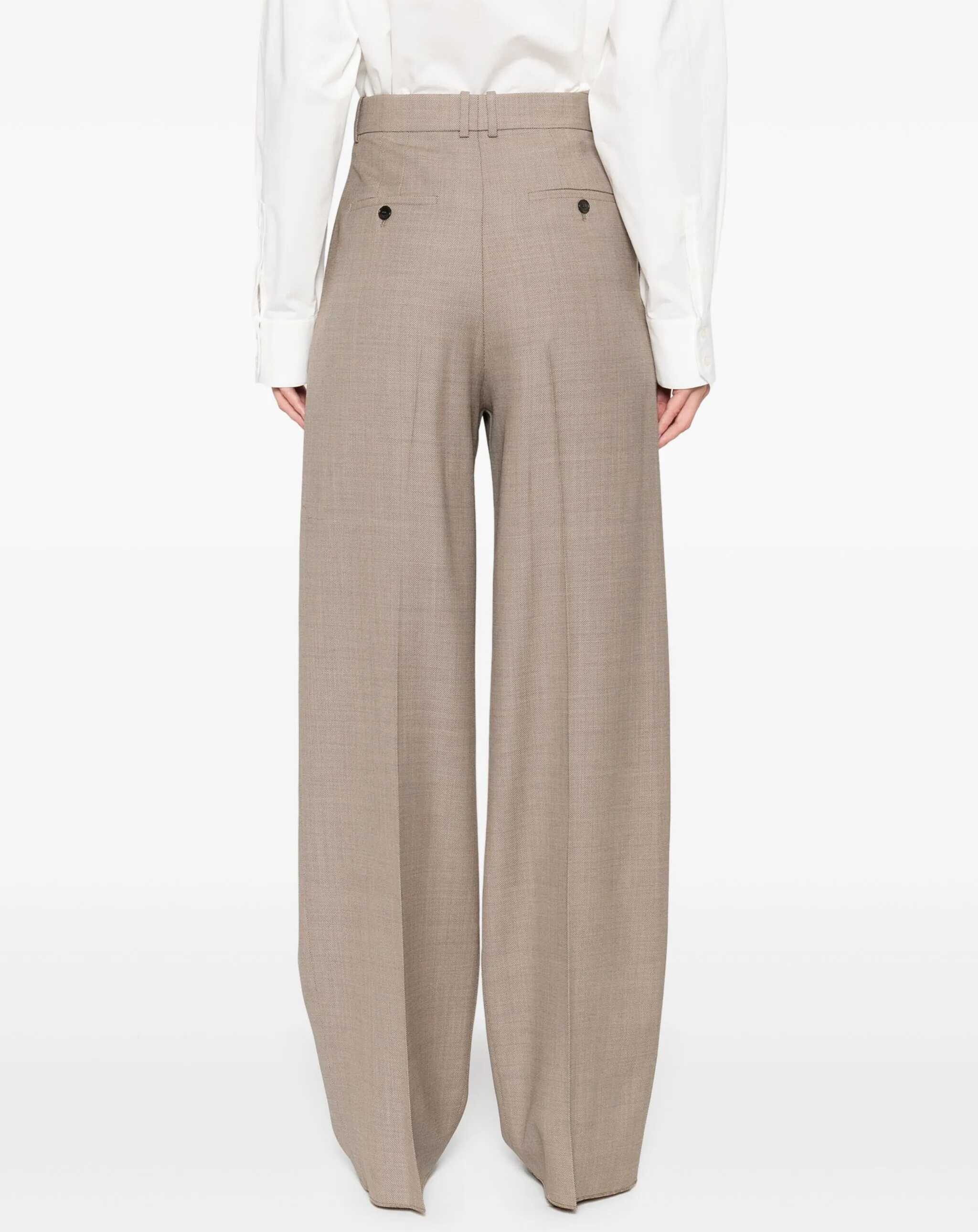 Saint Laurent's wide leg Pants, made from wool, are distinguished by a sleek, structured silhouette. Featuring a center pleat and double pleats, they have a high waist with belt loops, front zipper and hook-and-eye closure. Two side welt pockets and two buttoned back pockets complete the design for timeless sartorial elegance.