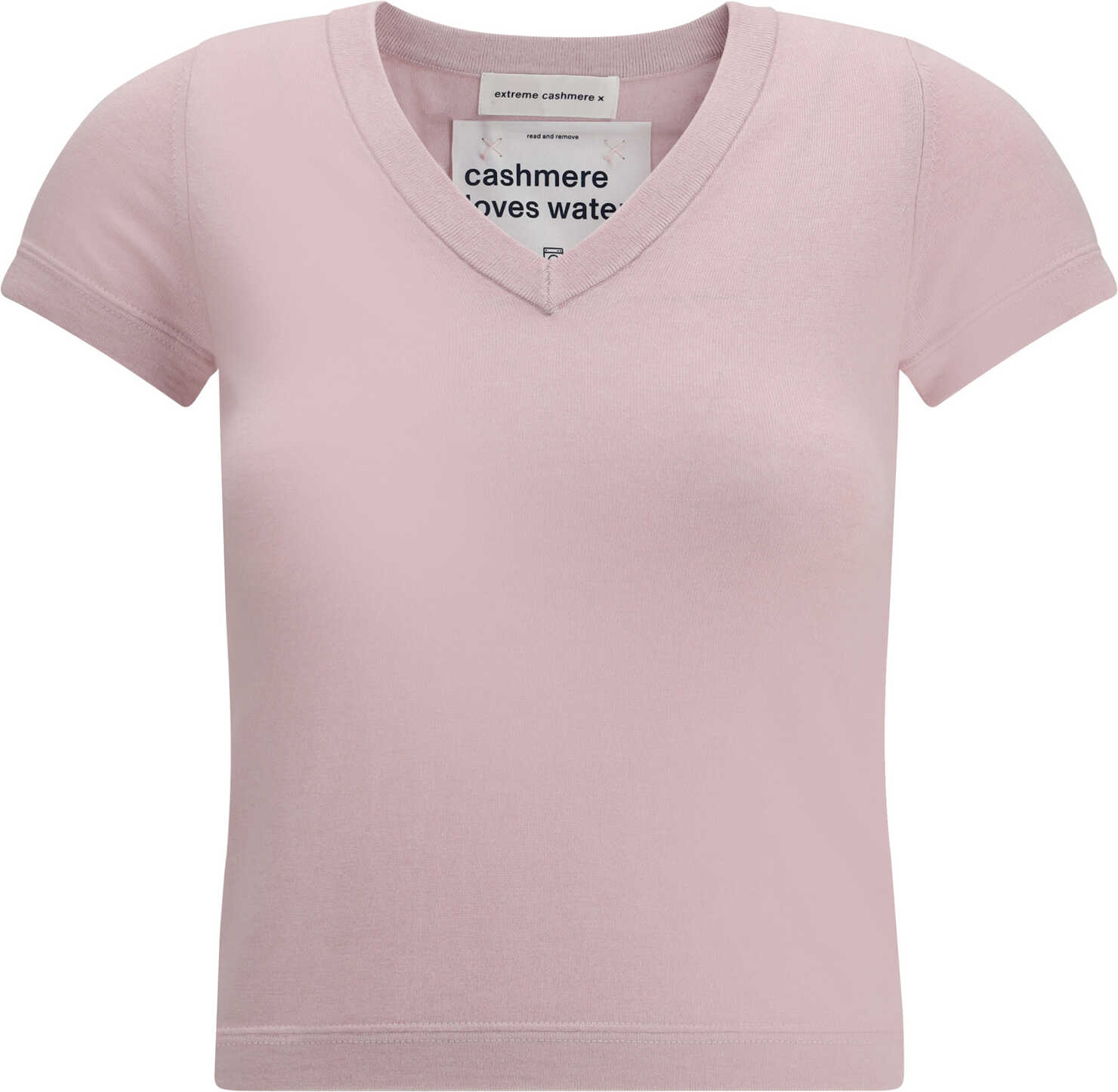 Extreme Cashmere's knit T-Shirt is a garment with an essential and refined style. Made from a soft blend of cashmere and cotton, it features a ribbed V-neckline and a cropped cut that gives a modern, feminine touch. Perfect for casual-chic looks with comfort and quality.