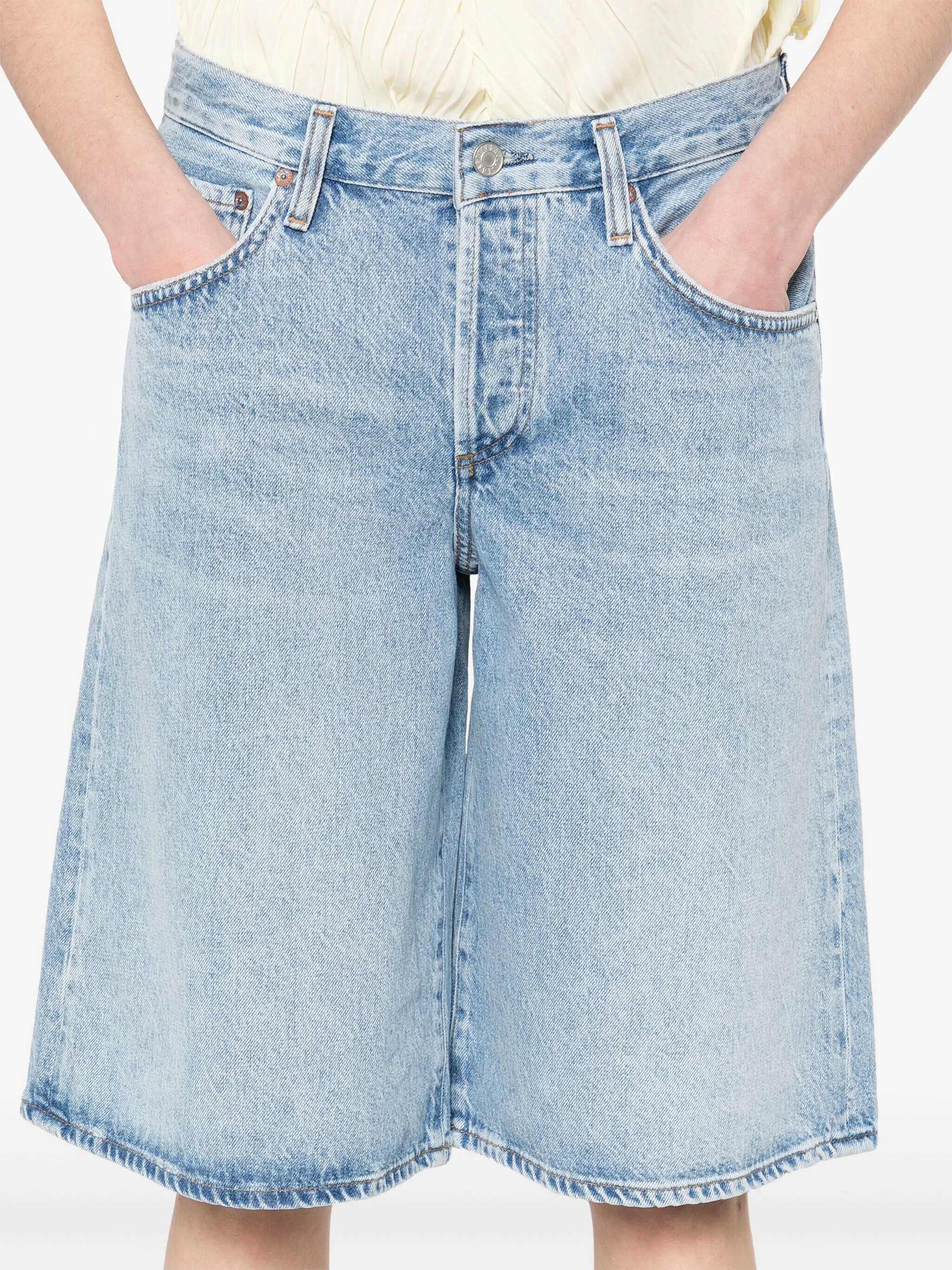 Agolde's denim Shorts offer a relaxed, contemporary aesthetic. Featuring a five-pocket baggy pattern, they feature a front button and zipper closure, as well as belt loops at the waist. A casual and versatile garment perfect for summer looks with an urban mood.