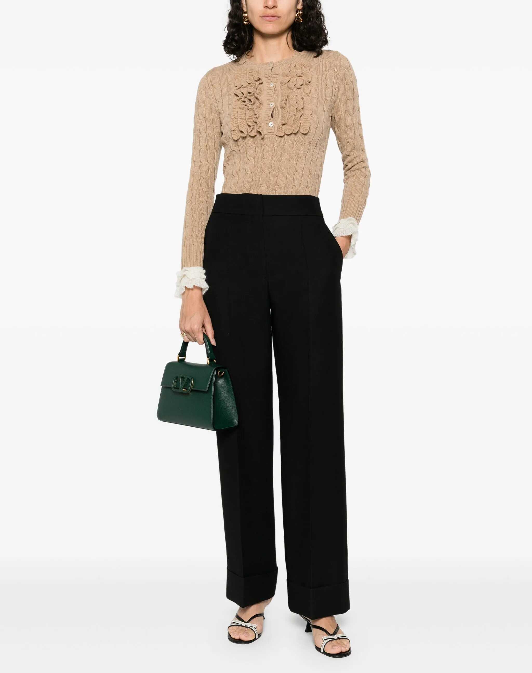 Valentino's Wool Pants offer a clean, sophisticated silhouette perfect for stylish and versatile looks. The front zip-and-hook closure ensures a precise fit, while the two side welt pockets and back pockets add functionality. The turn-up at the bottom completes the design with a tailored touch, making it ideal for formal settings and more casual occasions with style.