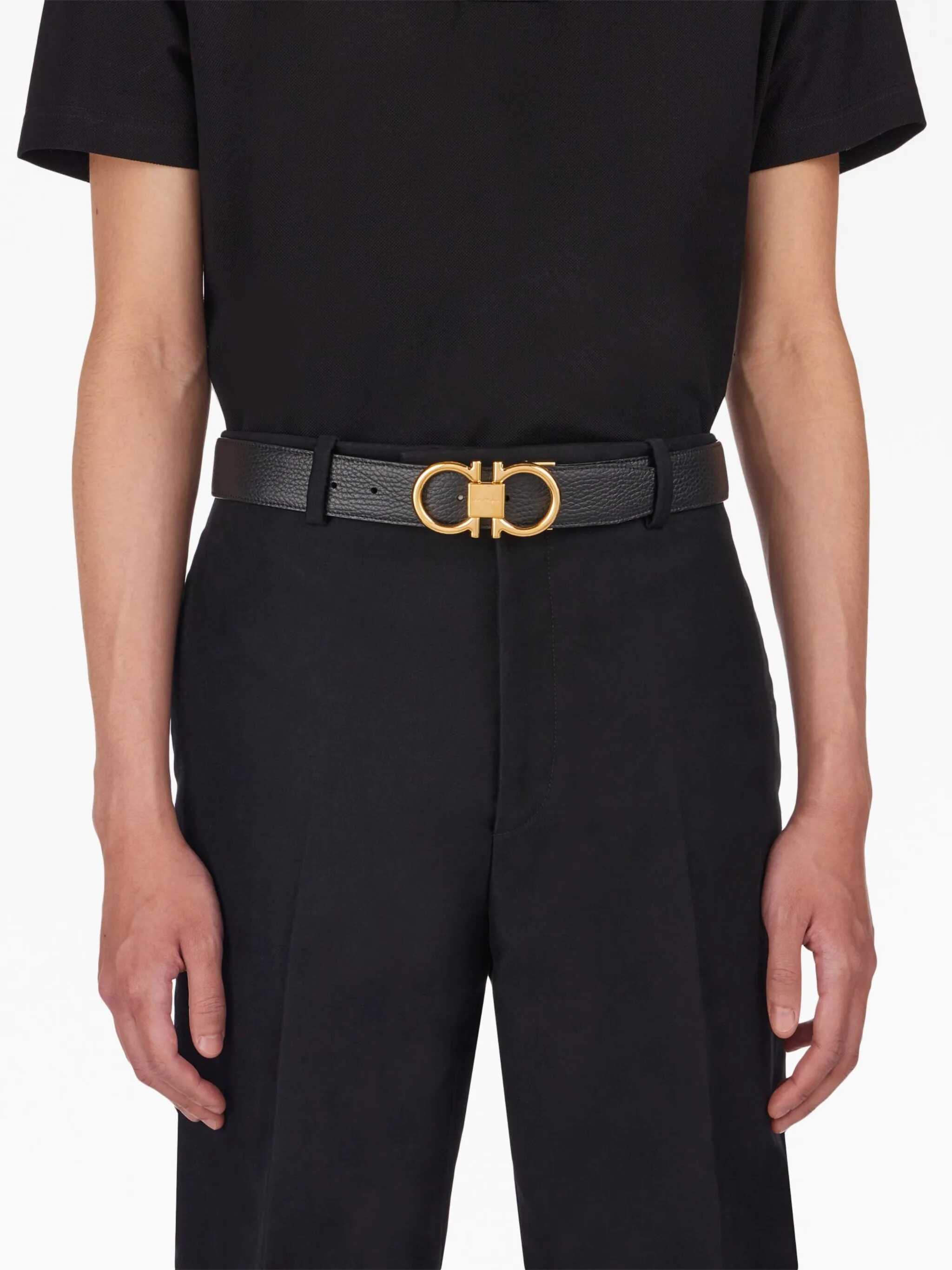 Ferragamo's Reversible Belt is an elegant and functional accessory made of tumbled leather for a smooth and sophisticated finish. The design features a removable double Gancini buckle with a rounded edge, featuring a refined gold finish that adds a touch of understated luxury. Reversible, it offers versatility to suit different looks, combining practicality and timeless style.
