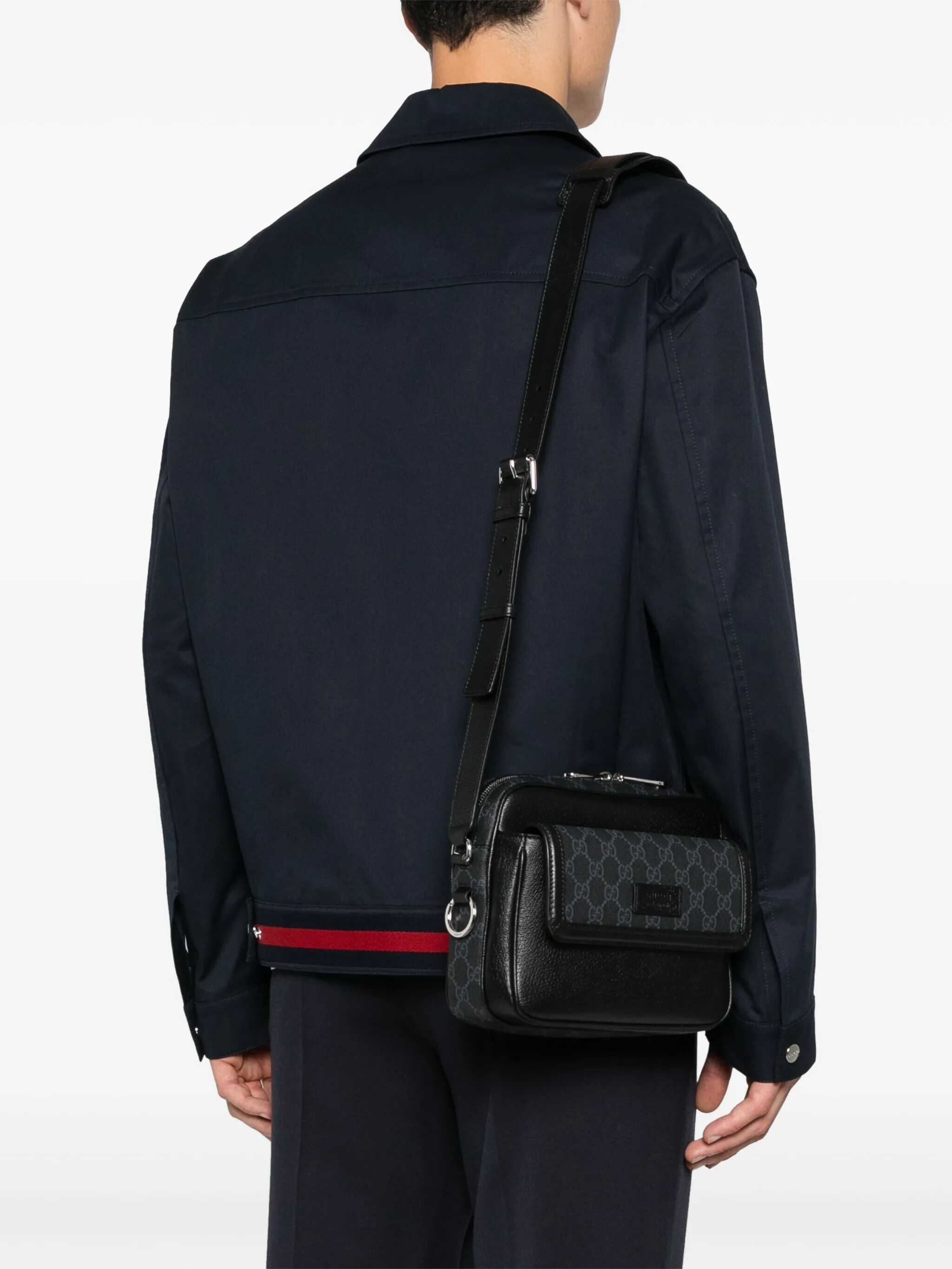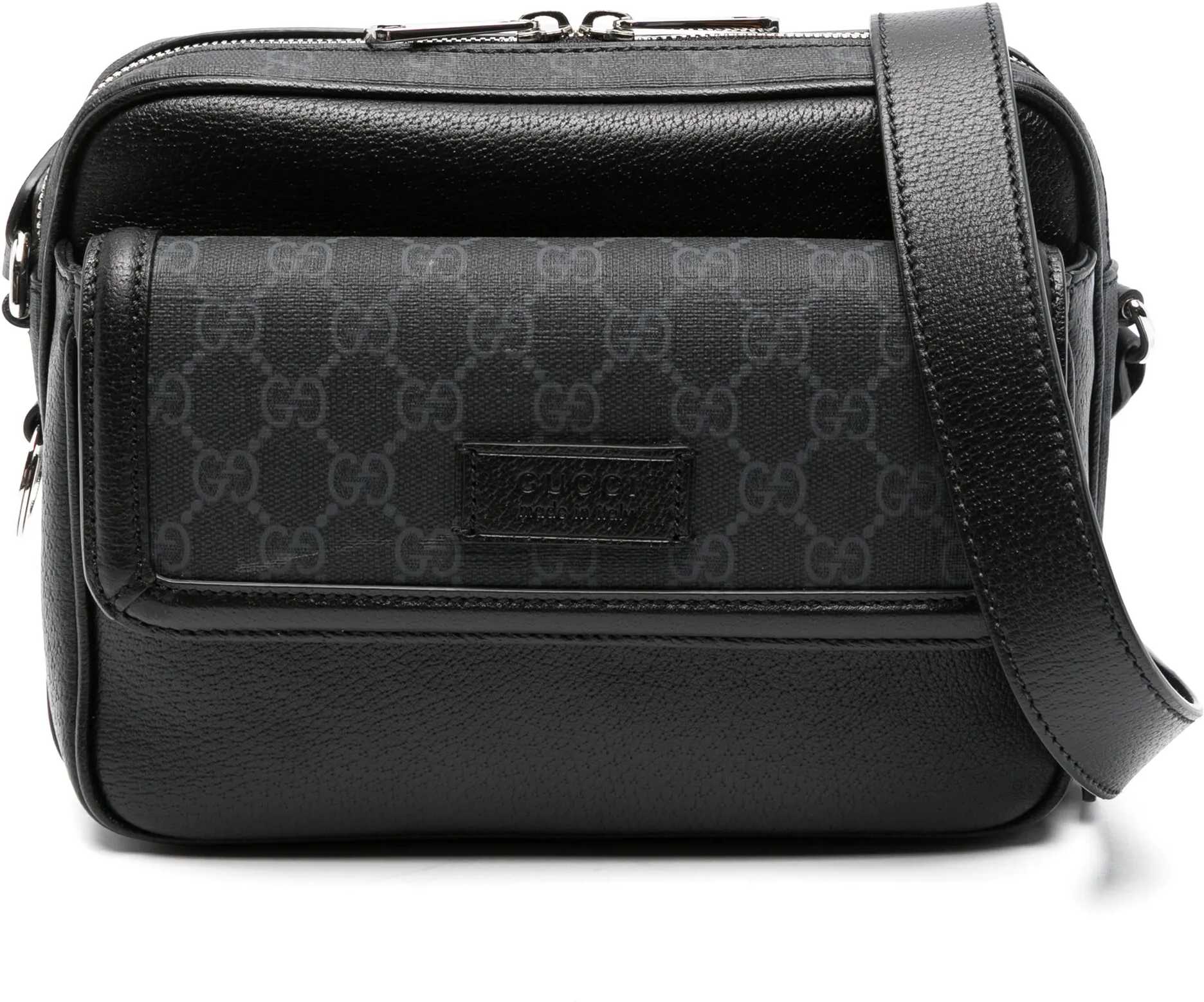 The Small GG Supreme Fabric Shoulder Bag is a compact and functional accessory featuring black GG Supreme fabric trim that accentuates its sophisticated aesthetic. The cotton-linen interior lining ensures lightness and durability, while the leather Gucci logo plaque adds a distinctive touch. It features an interior zippered pocket, a practical front flap pocket and an adjustable and detachable shoulder strap for versatile use. The zippered top closure completes the design with practicality and security.