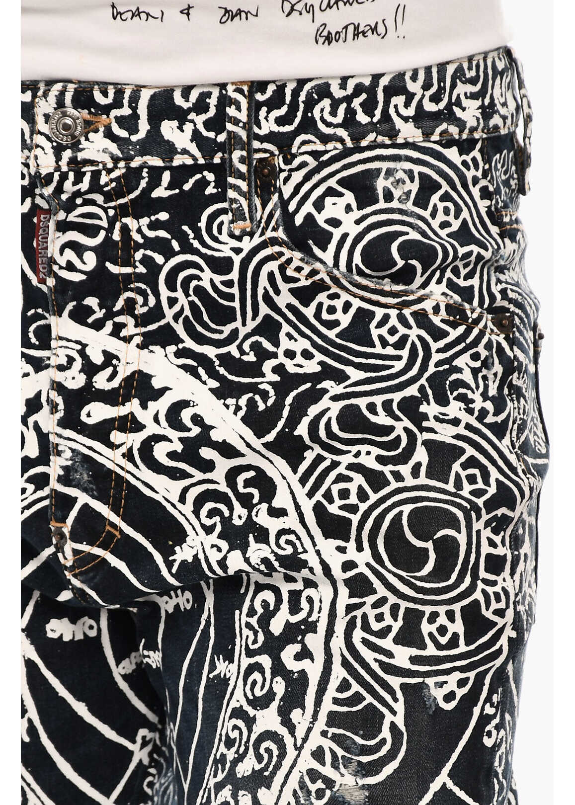 Slim Fit High Waisted Jeans With Allover Print 16 Cm